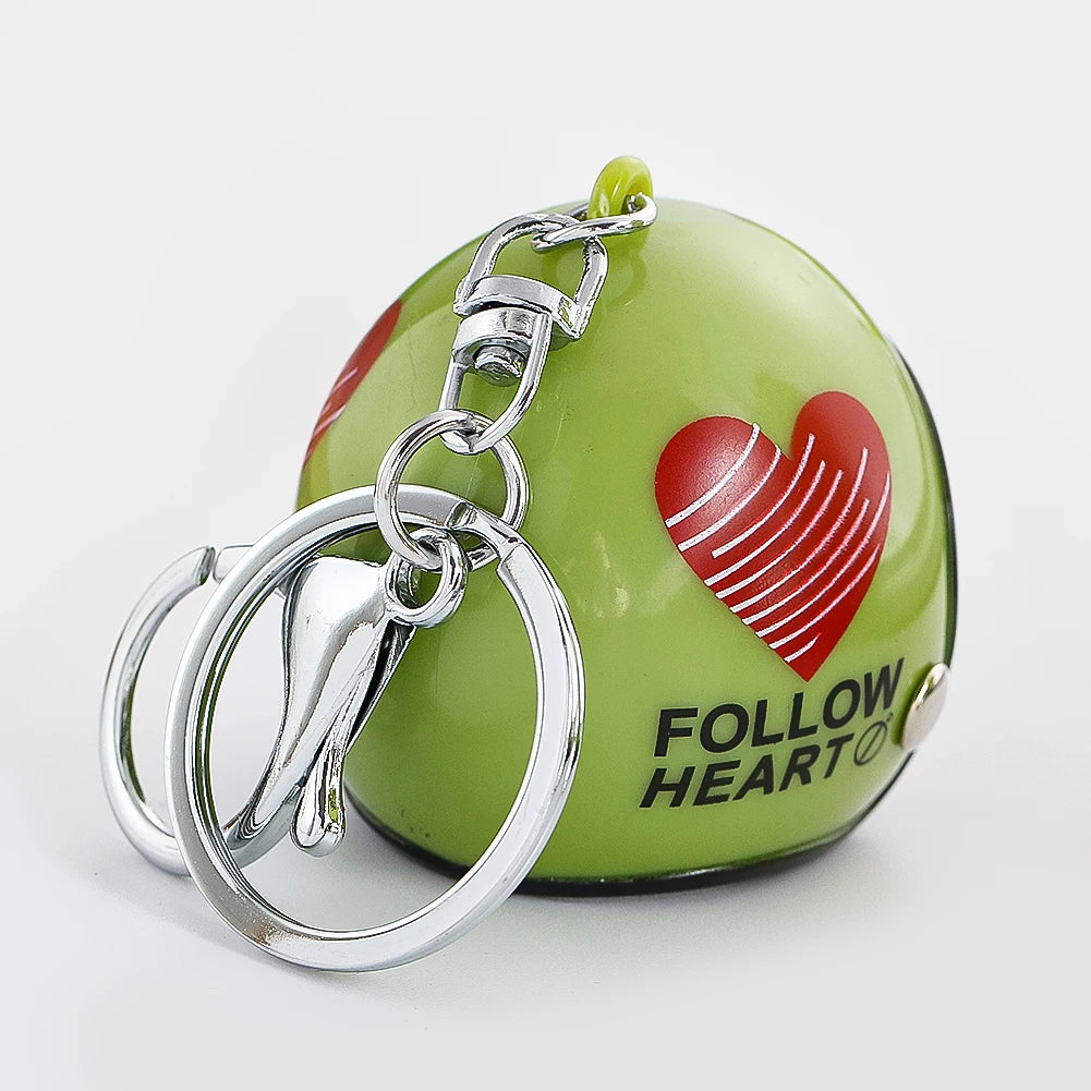 1PC PVC Green Helmet Keychain Mini Motorcycle Helmet Keychain Love Pattern Women's Bag Zipper Pendant Men's Car Key Chain