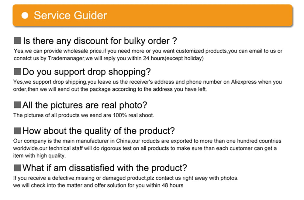 1, Fast Shipping 2-5 Days + Timely Warm Reply + Positive Attitude;