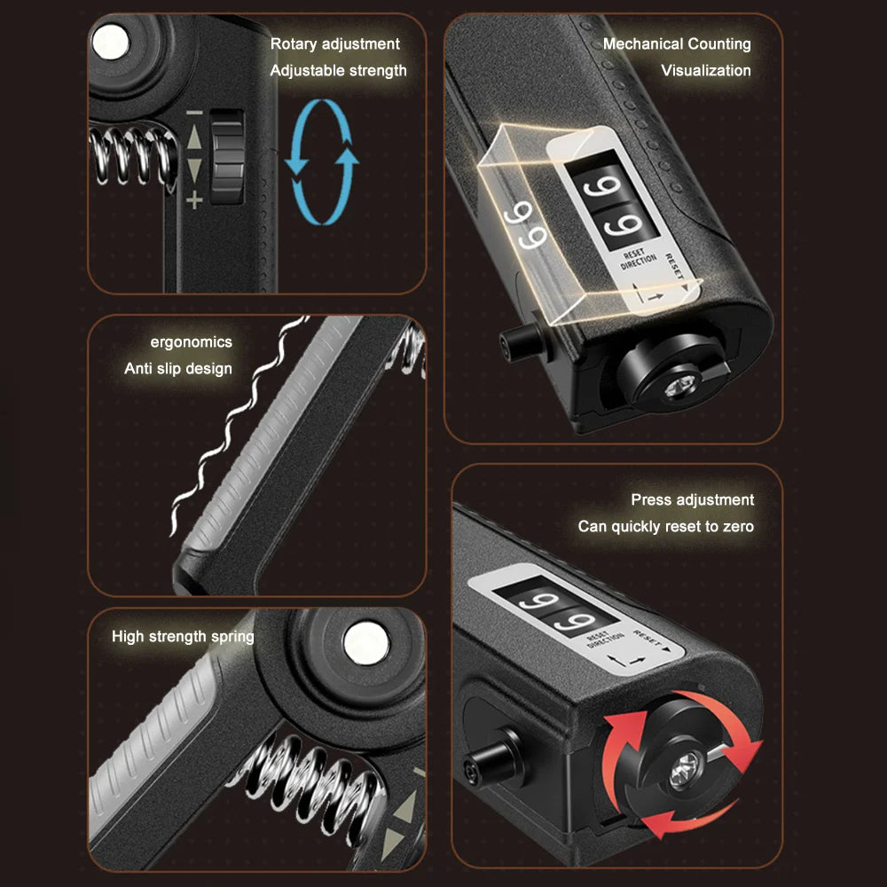 Made of durable springs, it boasts a non-slip grip for convenience. Track your progress and take your training to the next grade, whether at home, the gym.