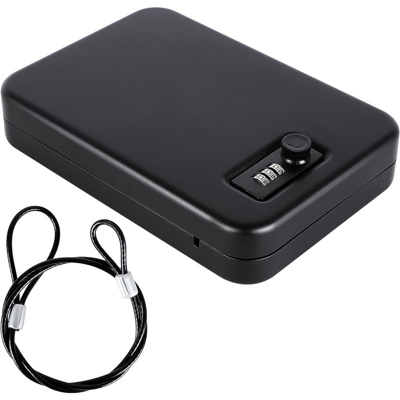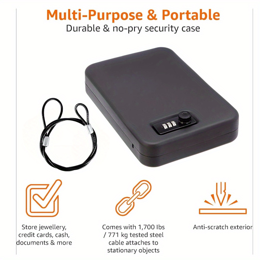 1pc Durable Iron Portable Security Case Lock Box with Combination Lock, Password-Protected Safe for Car, Home, Jewelry, and Cash Storage - Black