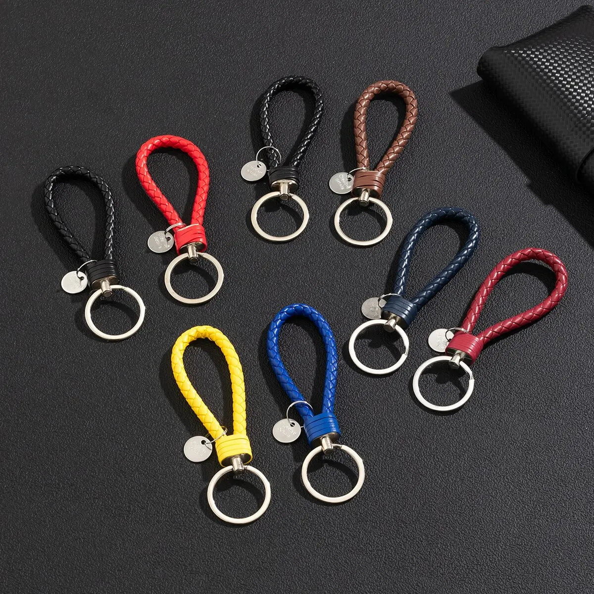 2Pcs/Set PU Leather Braided Woven Rope Keychain DIY Bag Pendant Key Chain Holder Key Car Trinket Keyring Men Women Gift Jewelry