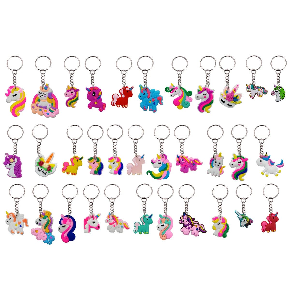 33pcs Cute PVC Animal Keychain Cartoon unicorn Key Chain Ring Fashionable decoration Wallet bag Accessories Ideal Party Gifts