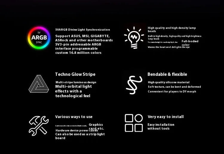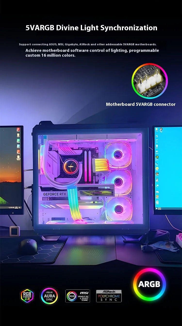 5V 3Pin ARGB Sync PC Cable 8/24PIN Motherboard Power Extension Cable Flexible LED Strip Light DIY Kit for Computer Power Supply