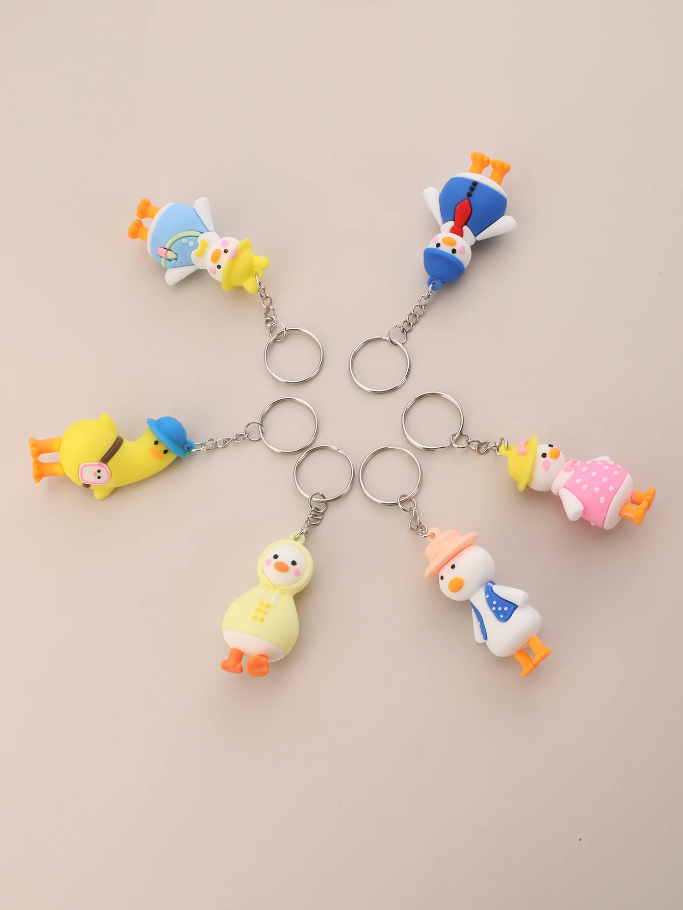 6pcs PVC Duck Keychain Creative Trendy Cute Animal Pendant Bag Key Accessories Key Chain Gifts Easter
