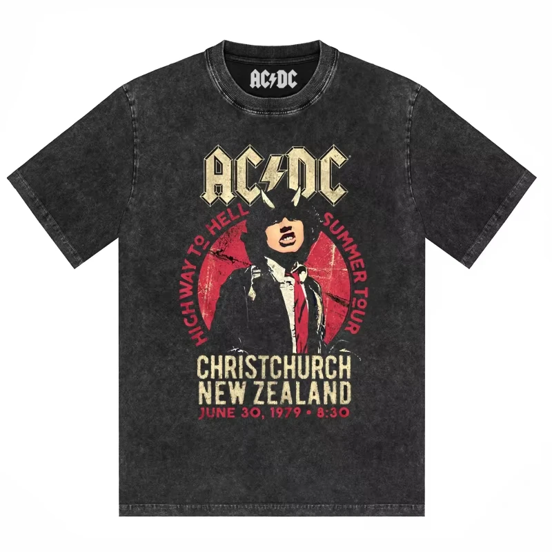 ACDC Band Printed T-shirt Washed Retro Old Short Sleeve Trendy Couple Comfortable Loose Casual Fashion New Men's Clothing