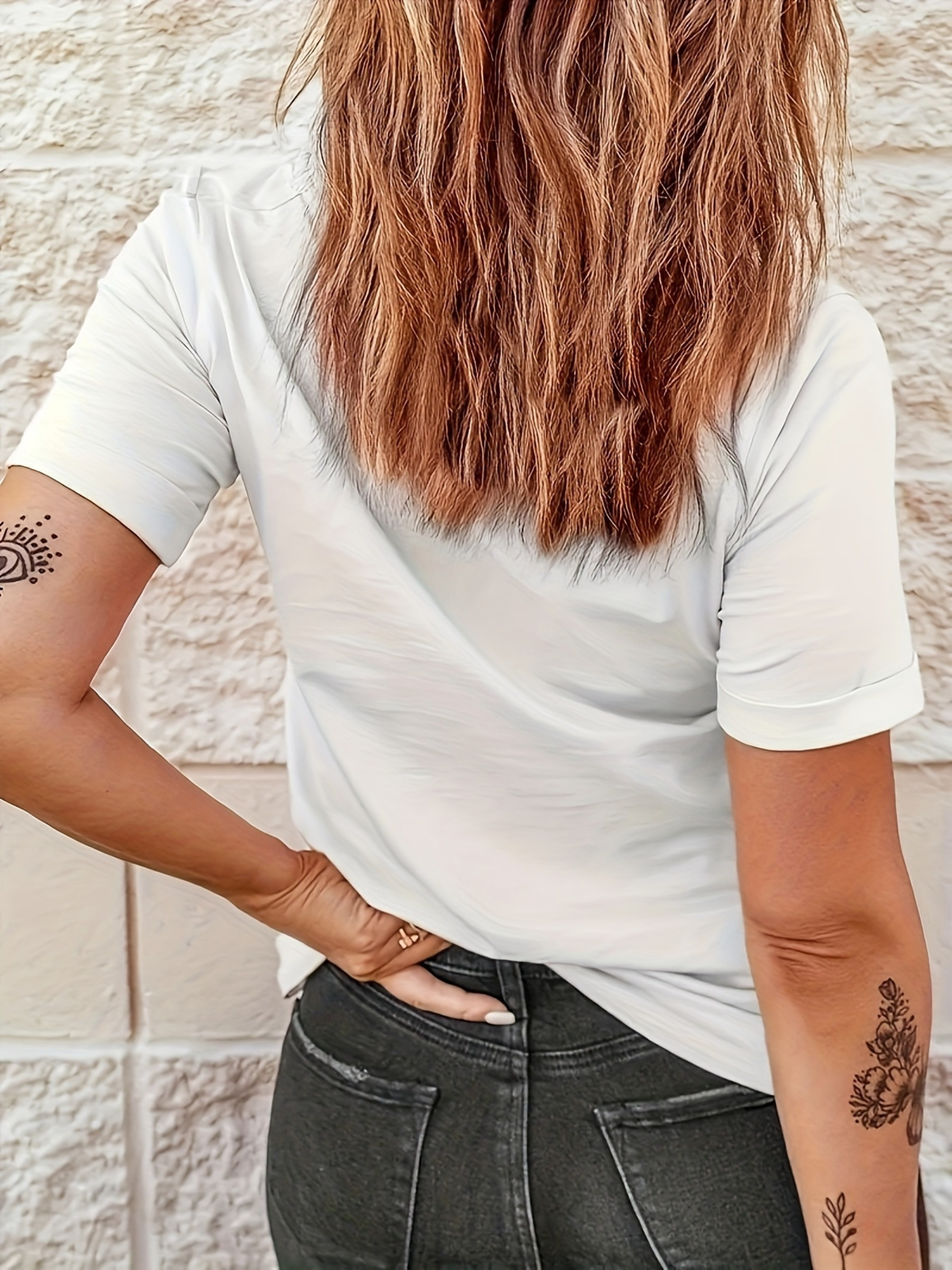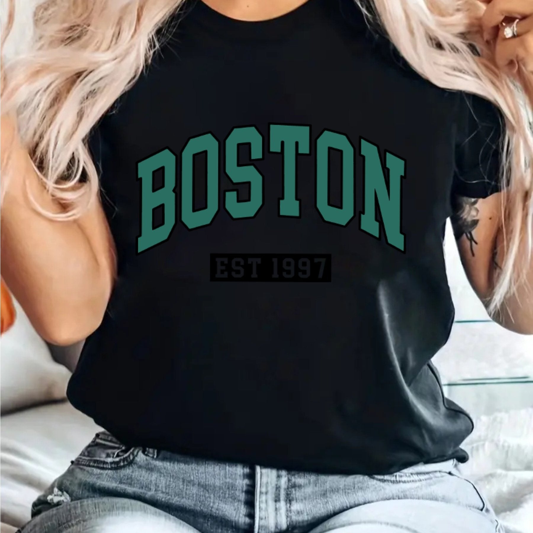 BOSTON Lettering Pattern Crew Neck T-Shirt, Casual Short Sleeve T-Shirt, Women's Clothing