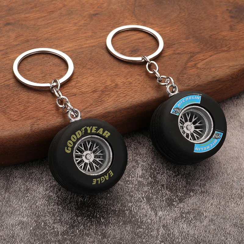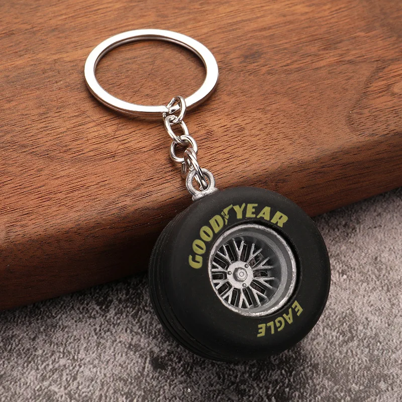 Car Keychains PVC soft rubber car tires Keyrings Creative Mechanical Car Parts Keychain Gift for Men