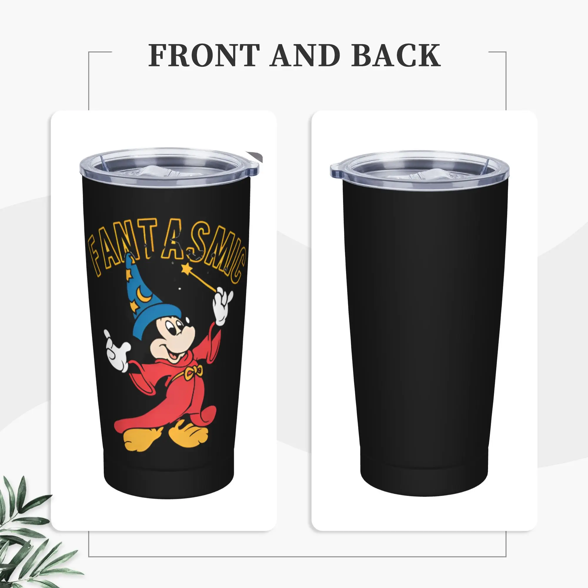 Cartoon Fantasia Mickey Tumbler Vacuum Insulated Magic Wizard Thermal Cup with Lid Straw Office Home Mugs Hot Cold Drink, 20oz