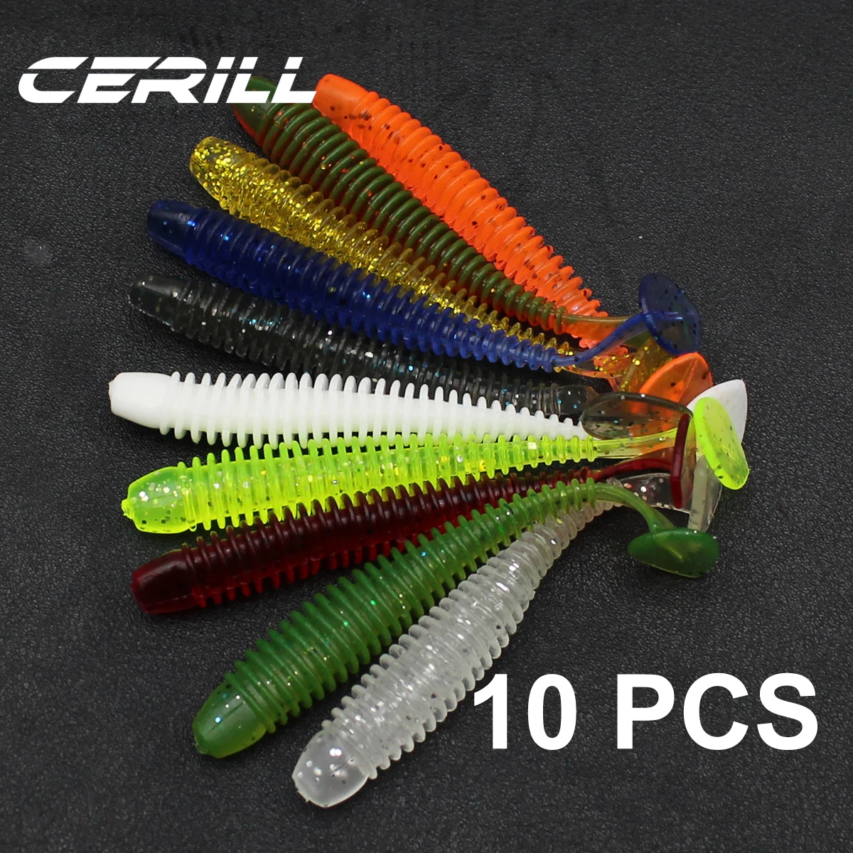 Cerill 10 PCS 6 cm 7.5 cm Silicone T Tail Worm Soft Fishing Lures Artificial Baits Bass Jigging Wobblers Swing Swimbait Tackle