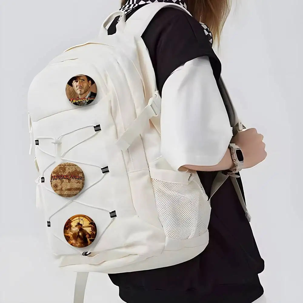 Classic Movie I-Indiana J-Jones Badges Round Exquisite Badge Brooches Creative Pins For Clothes Hat Backpack Gift Accessories