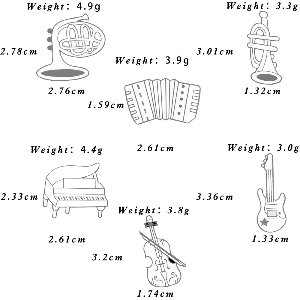Cool Violin Enamel Pins Elegant Piano Accordion Bass Instrument Brooches Musician Shirt Lapel Pin Badges Jewelry for Music Lover