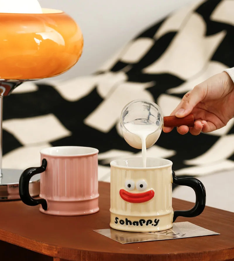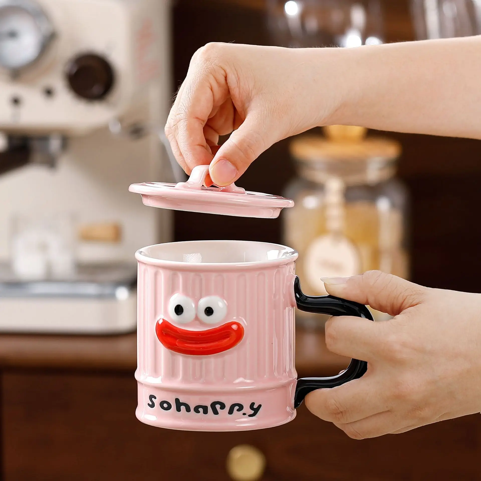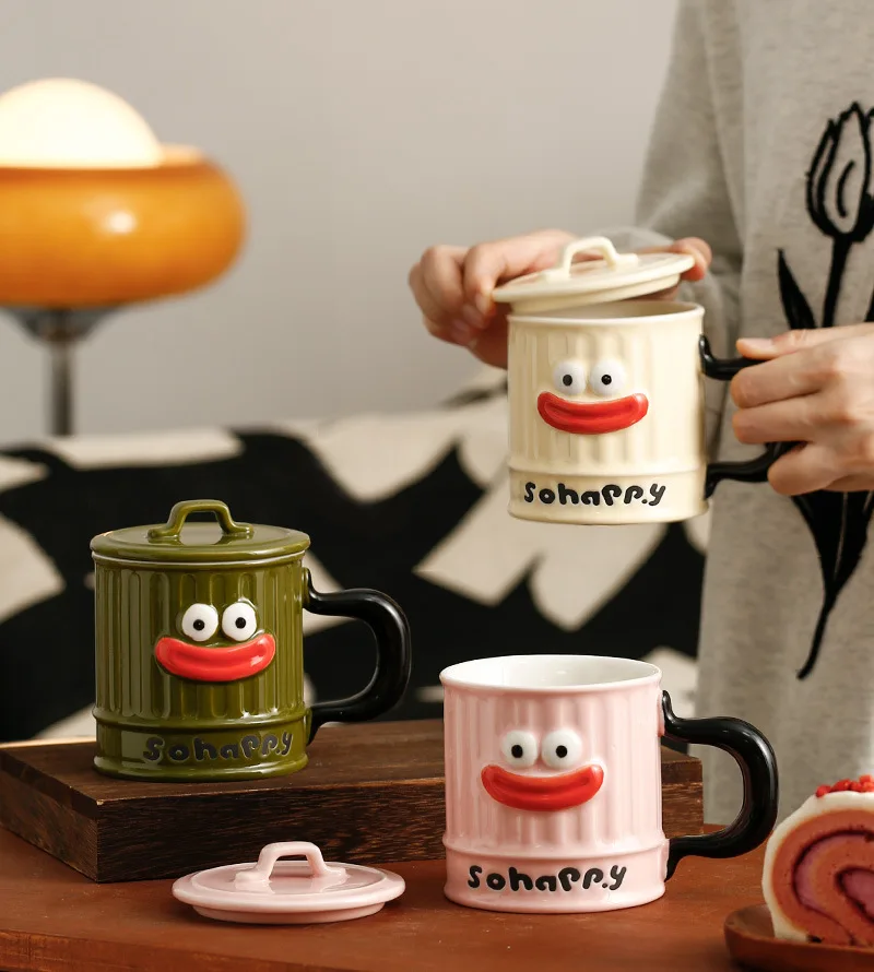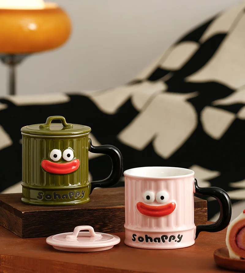 Creative Design, Cute, Funny, Ugly, Cute, Big Mouth Ceramic Mug with Lid, Home Office Drinking Cup, Milk Coffee Cup Ceramic Mug