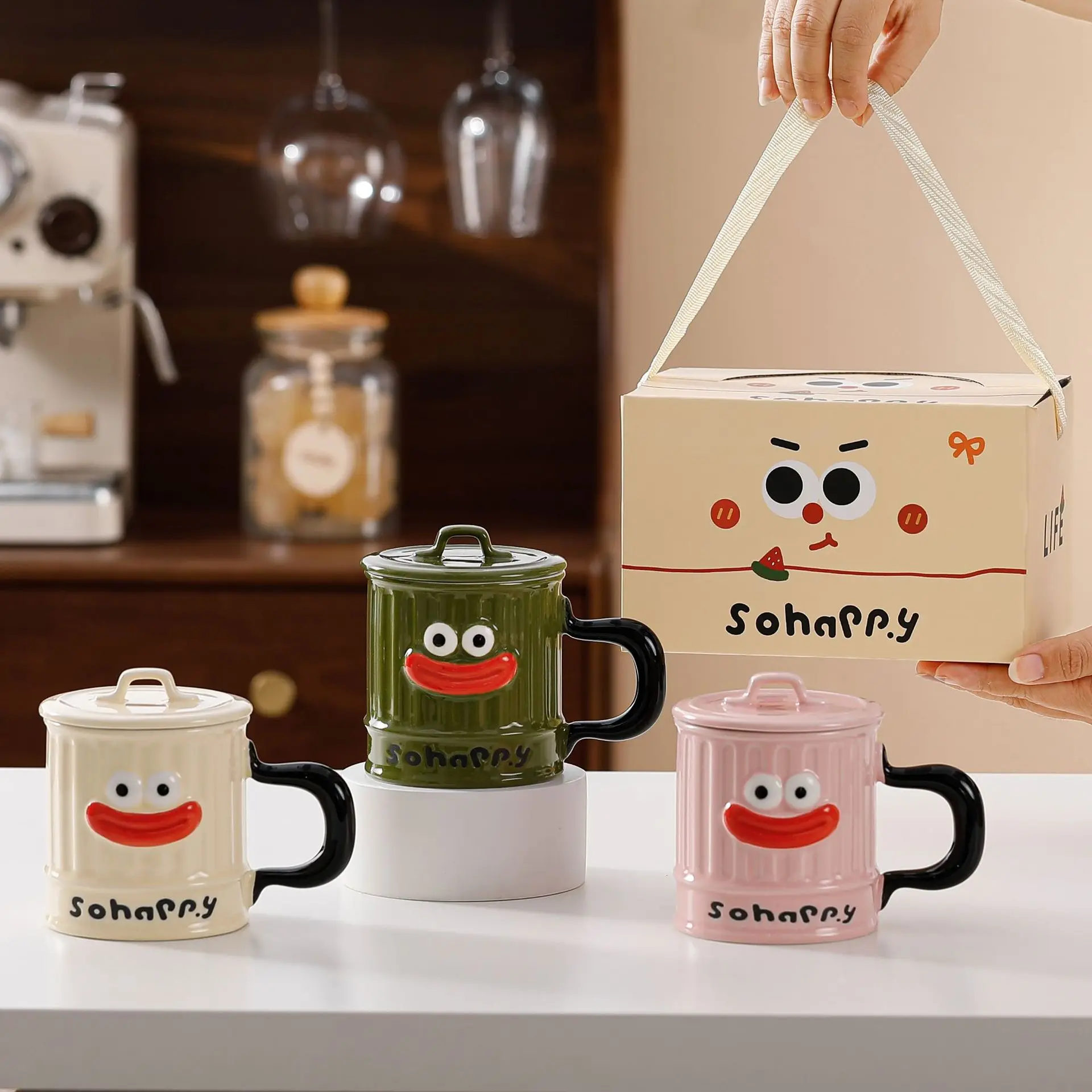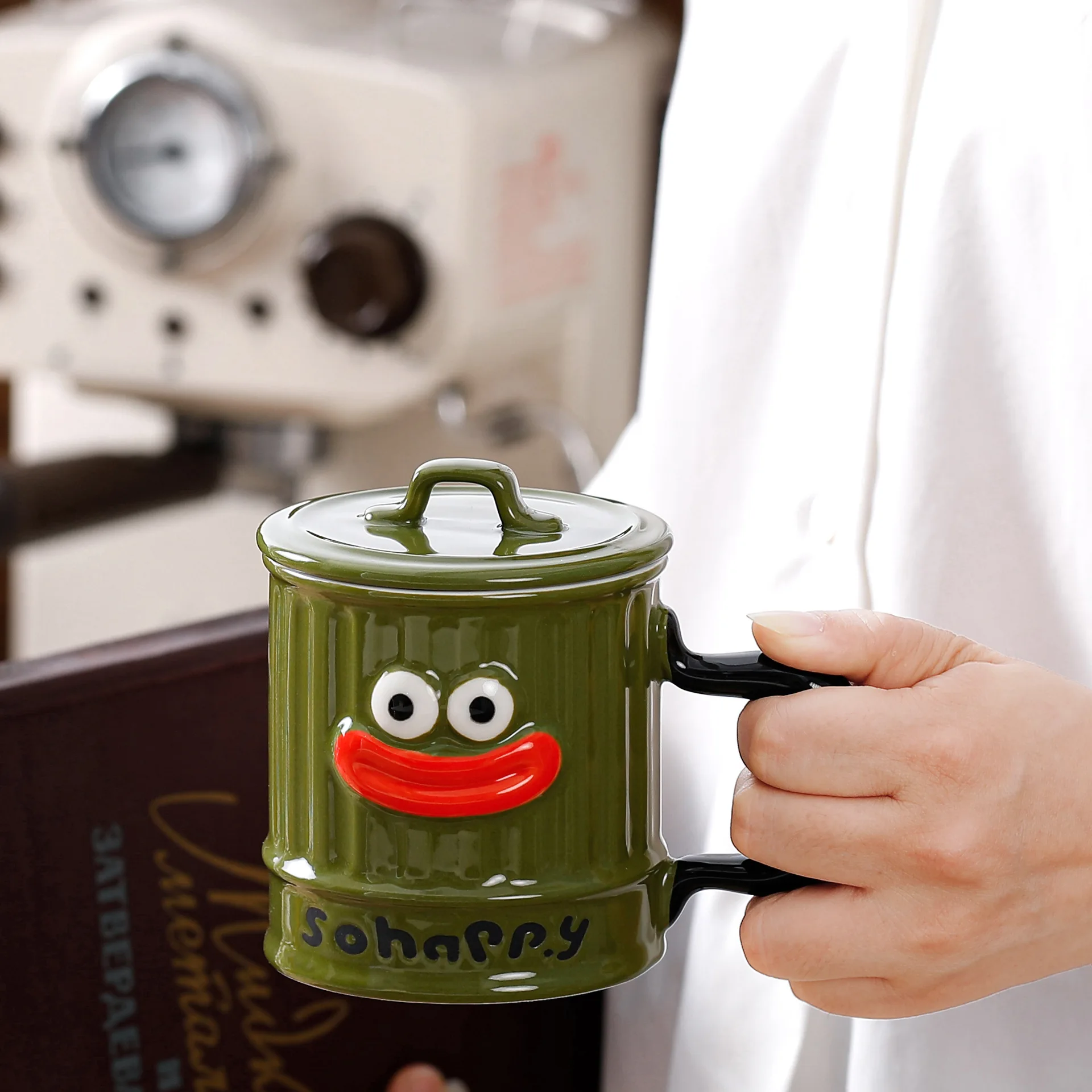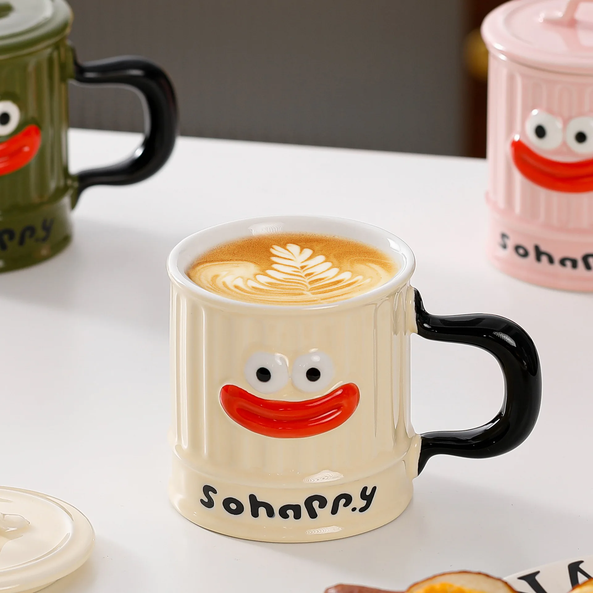 Creative Design, Cute, Funny, Ugly, Cute, Big Mouth Ceramic Mug with Lid, Home Office Drinking Cup, Milk Coffee Cup Ceramic Mug