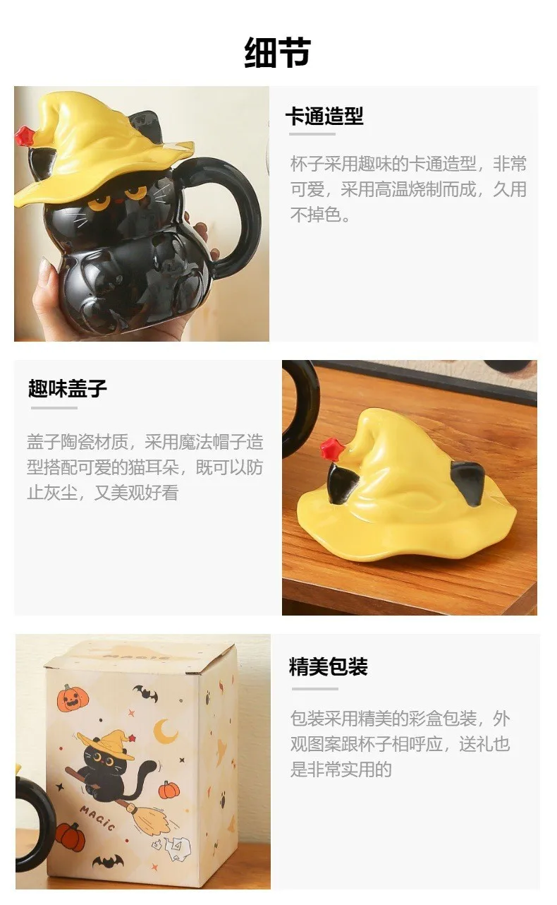 Creative Magic Hat Cat Ghost Ceramic Mugs with Lid Personalized Coffee Cups Couple Milk Cup Breakfast Mug Halloween Gifts