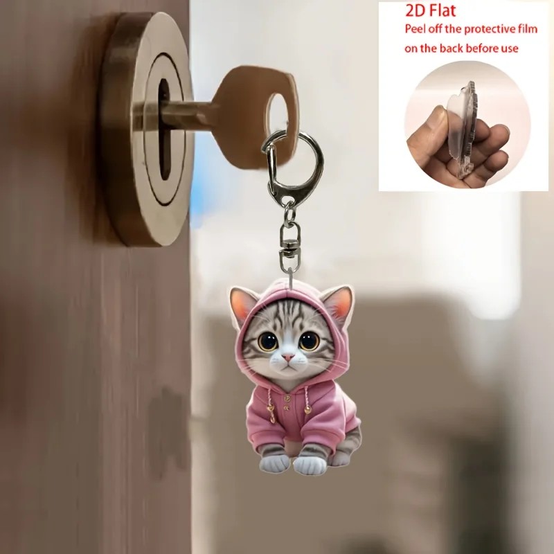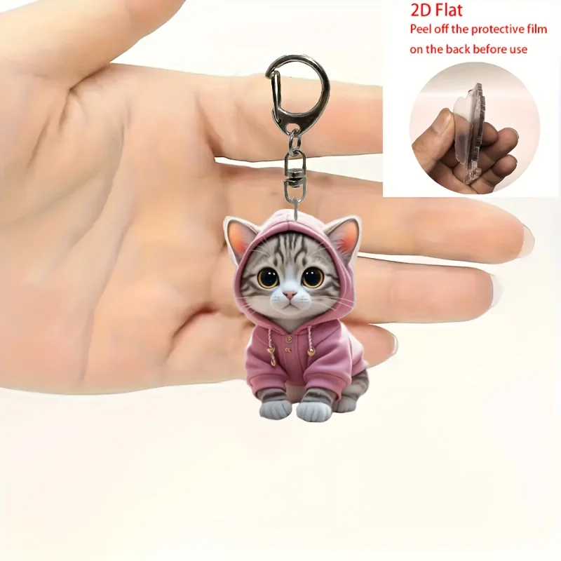 Cute Cartoon Cat Acrylic Keychain - Waterproof, Durable, Python Hook Clasp, Perfect Gift for Family and Friends