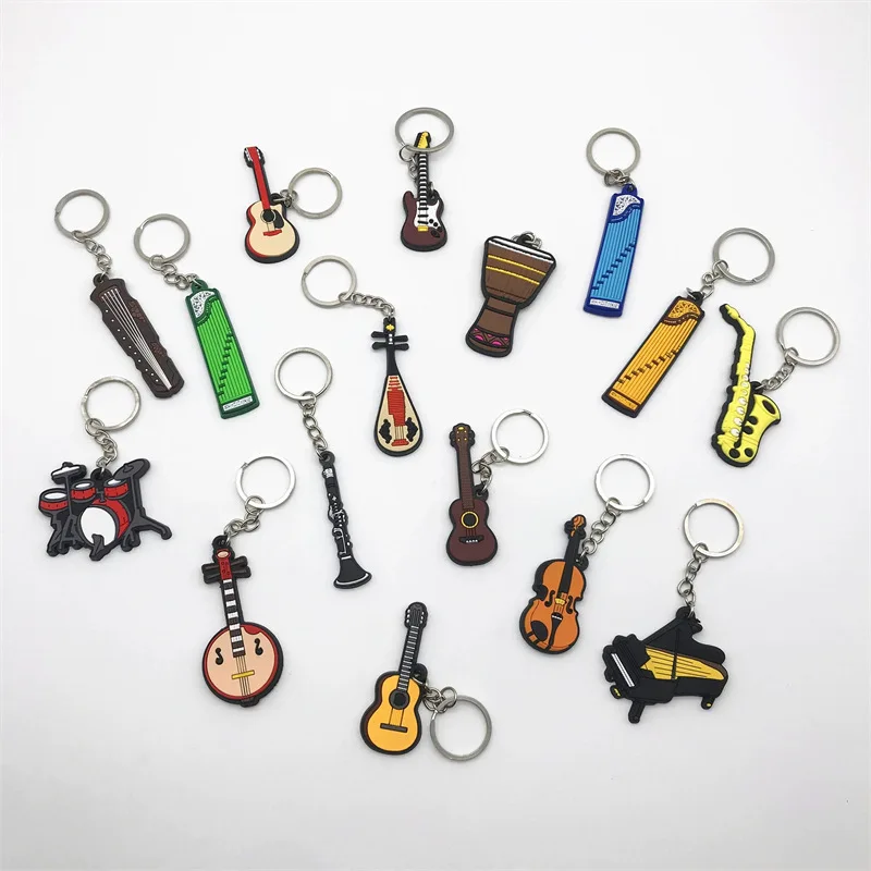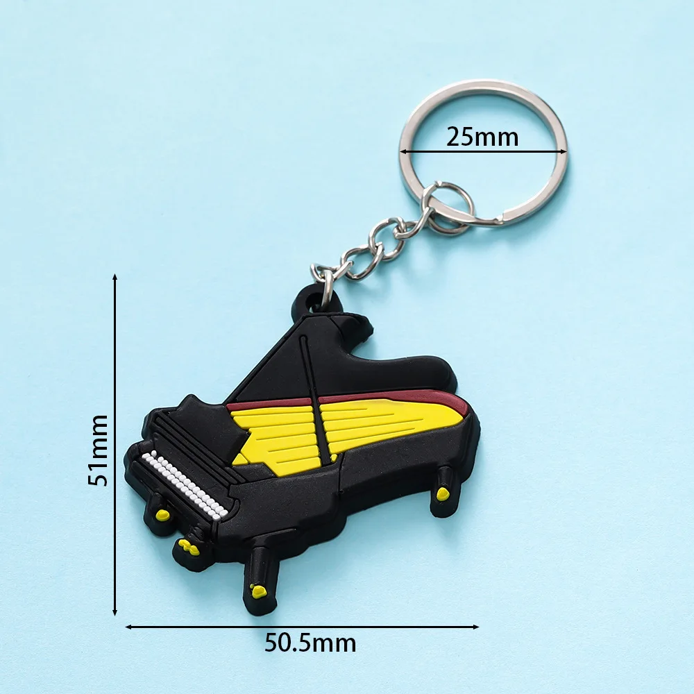 Cute Guitar Violin Piano Saxophone Keychains PVC Soft Rubber Cartoon Musical Instrument Keyring Car Backpack Pendant Accessories