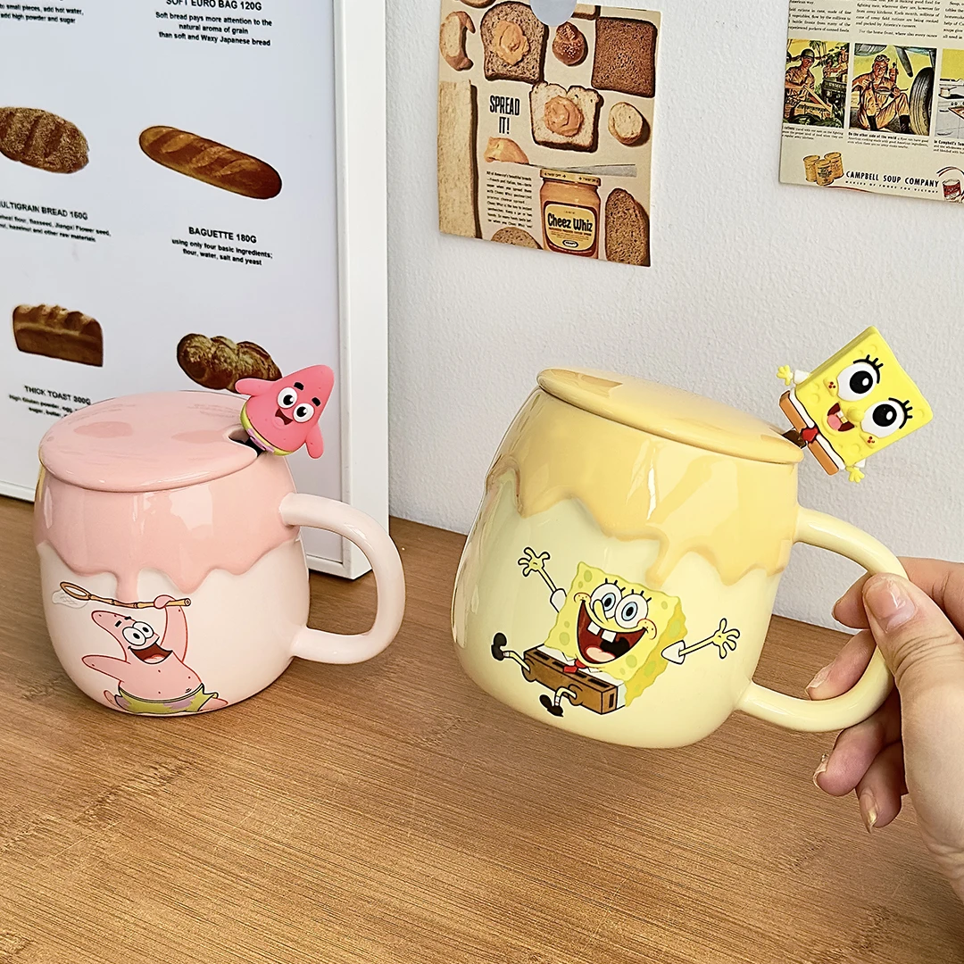 Cute SpongeBob Mugs Cartoon SquarePants Patrick Star Coffee Tea Milk Mugs Cups 400ML Creative Office Water Cup Anime Girls Gifts