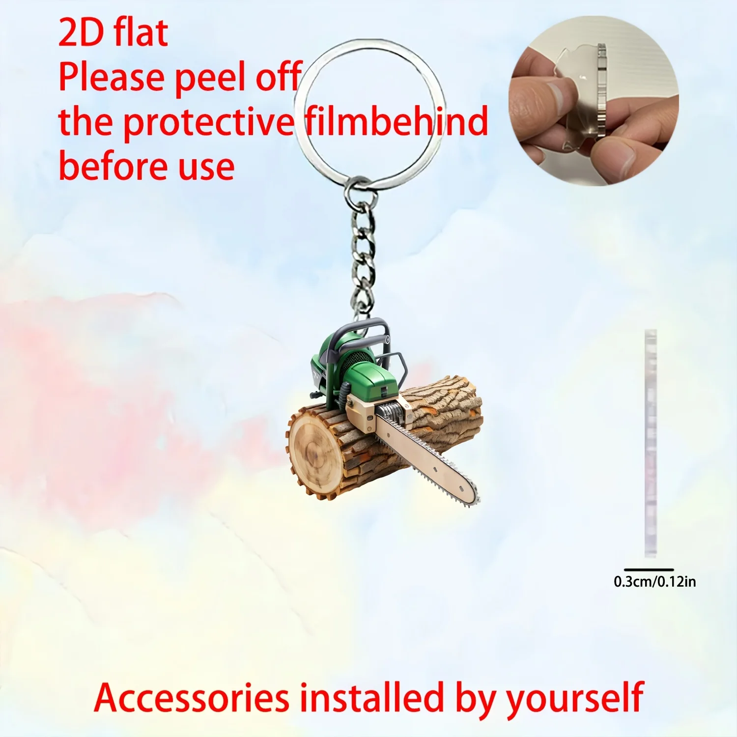 Distinctive Chainsaw Keychain 2D Individuation Pendant Flat Acrylic Ornament Hanging Decoration for Car,Bags,Party Festive,Gifts