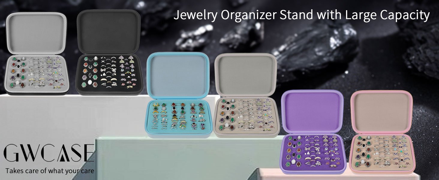 EVA Material Ring Organizer Storage Case - 42-Slot Jewelry Display Box for Rings, Earrings, Brooches, Cufflinks - Fits 50+ Rings Showcase Holder