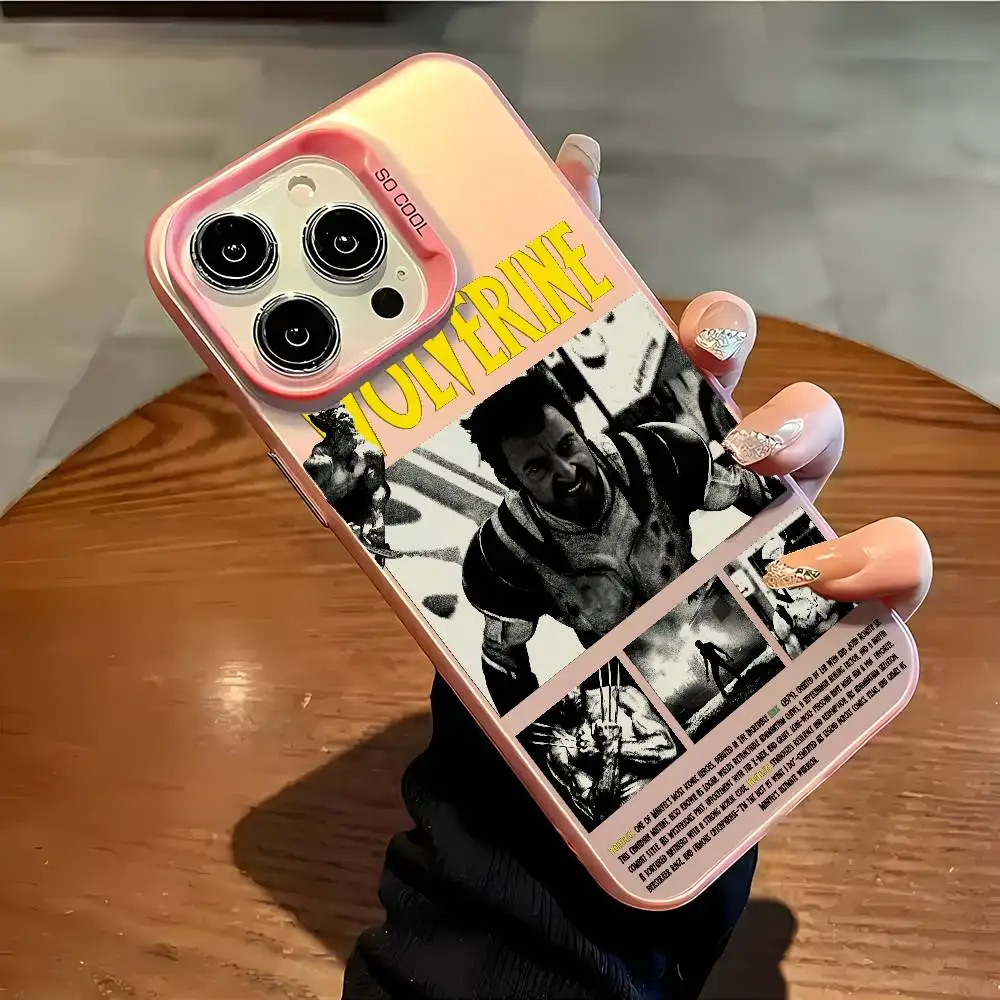 Fashion Wolverine Comic Phone Case For IPhone 16 15 14 13 12 11 Plus Pro Max Multicolor Aurora Laser Shockproof Funda Cover