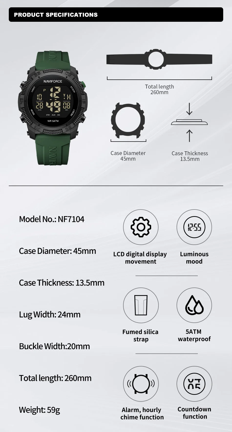 NAVIFORCE 7104 Watch for Men Hot Selling Casual Sports Men's Watch 3ATM Waterproof Luminous Calendar High Quality Silicone Strap