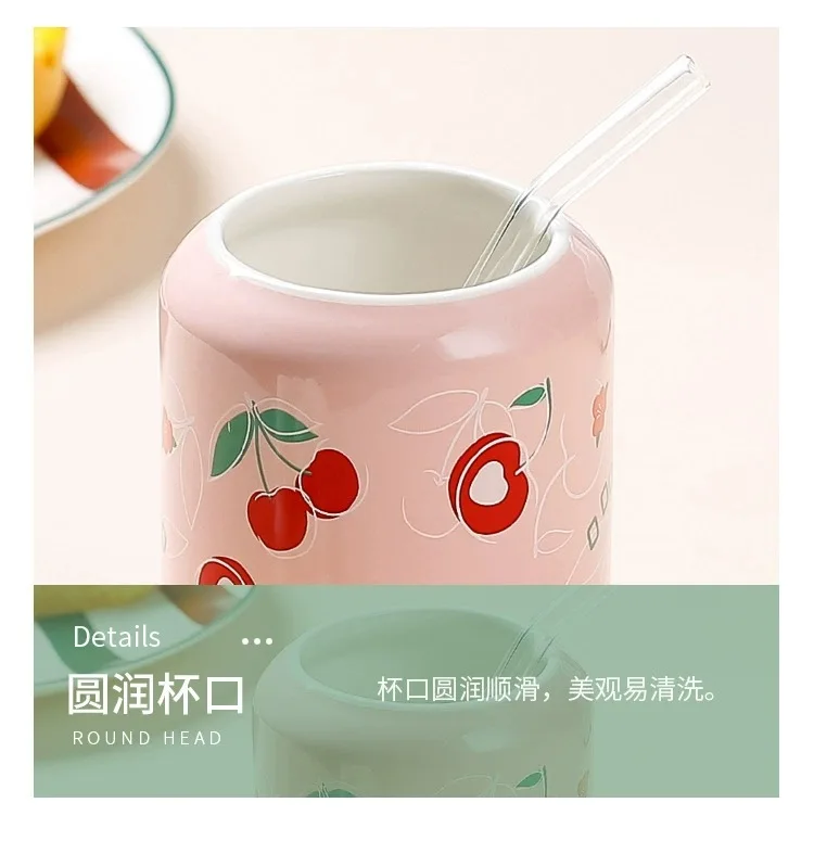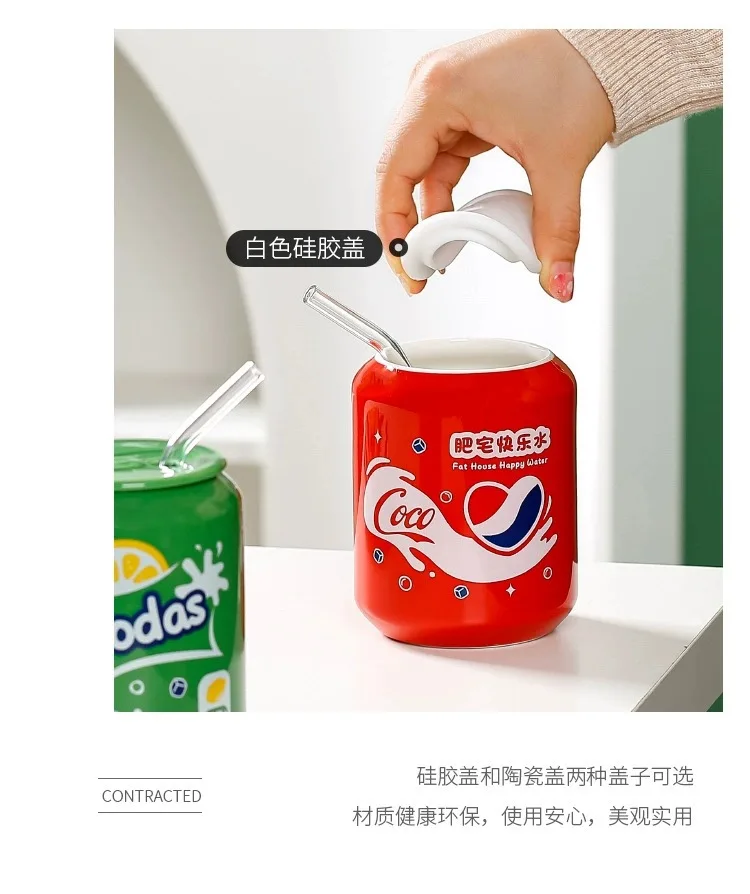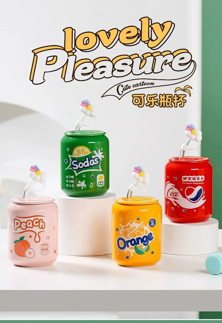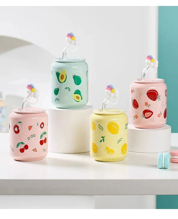 Fresh Creative Fruit Straw Cup Coke Soda Bottle Ceramic Mug with Lid Couple Souvenir Home Drinking Utensil Kitchen Appliance