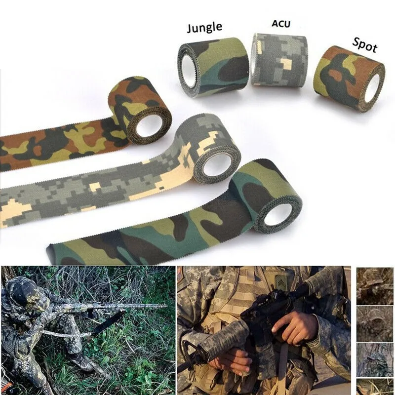 Hand Tool Camo Form Reusable Self Cling Camo Hunting Rifle Provide Insulation Fabric Tape Wrap Polyester Camouflage Equipment