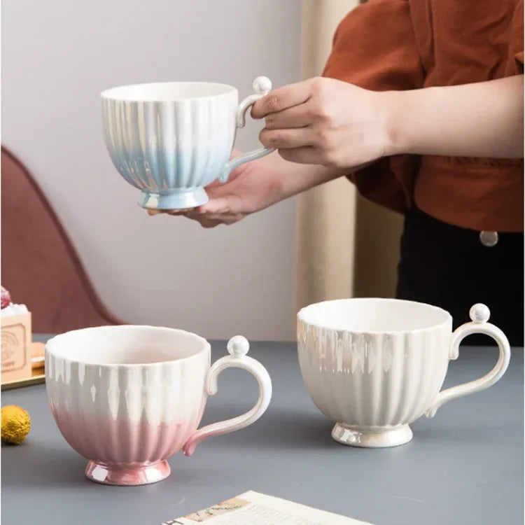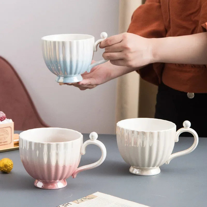style 490ml :Size: Cup - height 8.5CM * diameter 6.5CM, Dish - length 23CM * width 12CM, Spoon - length 12cm