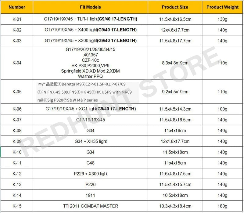Lightweight Kydex Tactical Holster Product Name:Lightweight Kydex Tactical Holster Color:BCP Item No.:GB-K