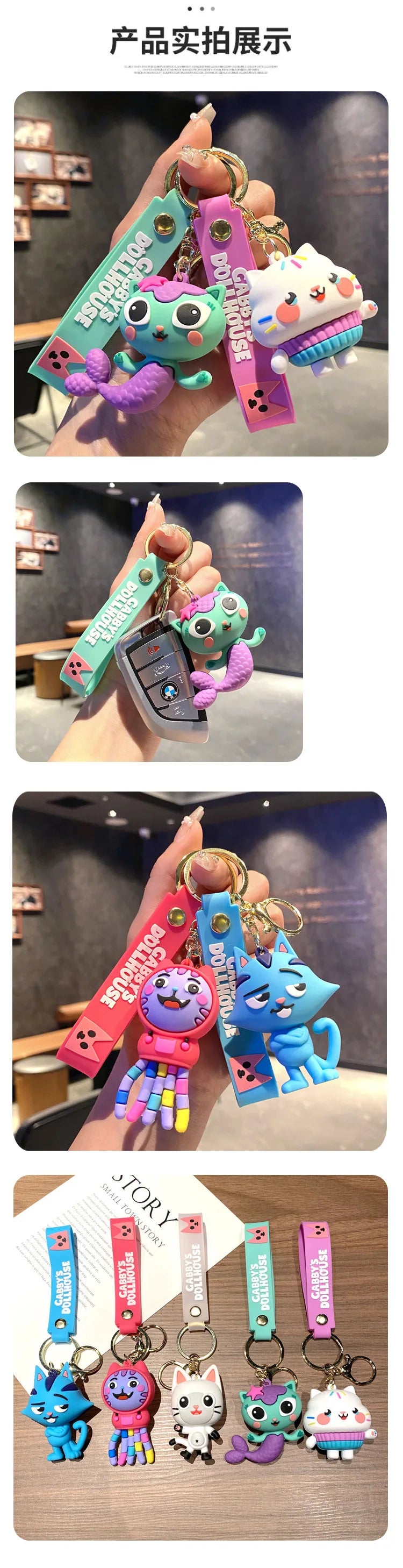 Kawaii Gabby Dollhouses Girl Cute Keychain Kids Cartoon PVC Keyring Children Anime Key Chain Backpack Pendant Birthday Gift 2025