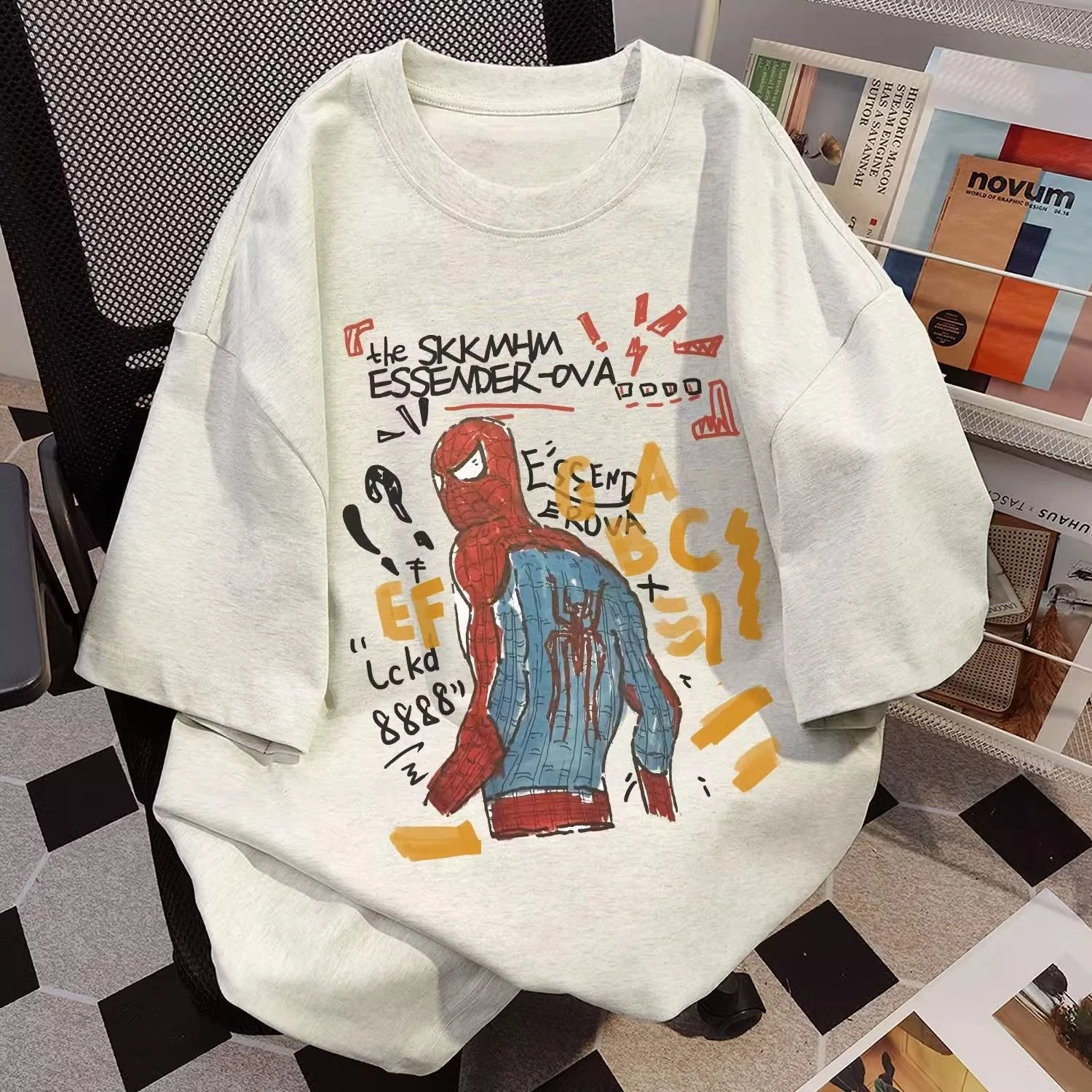 Marvel Authorized The New High-quality American Spider-Man Printed T-shirt Men and Women Theme Activities Wear Short Sleeves