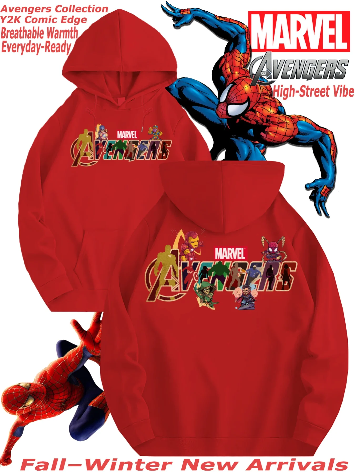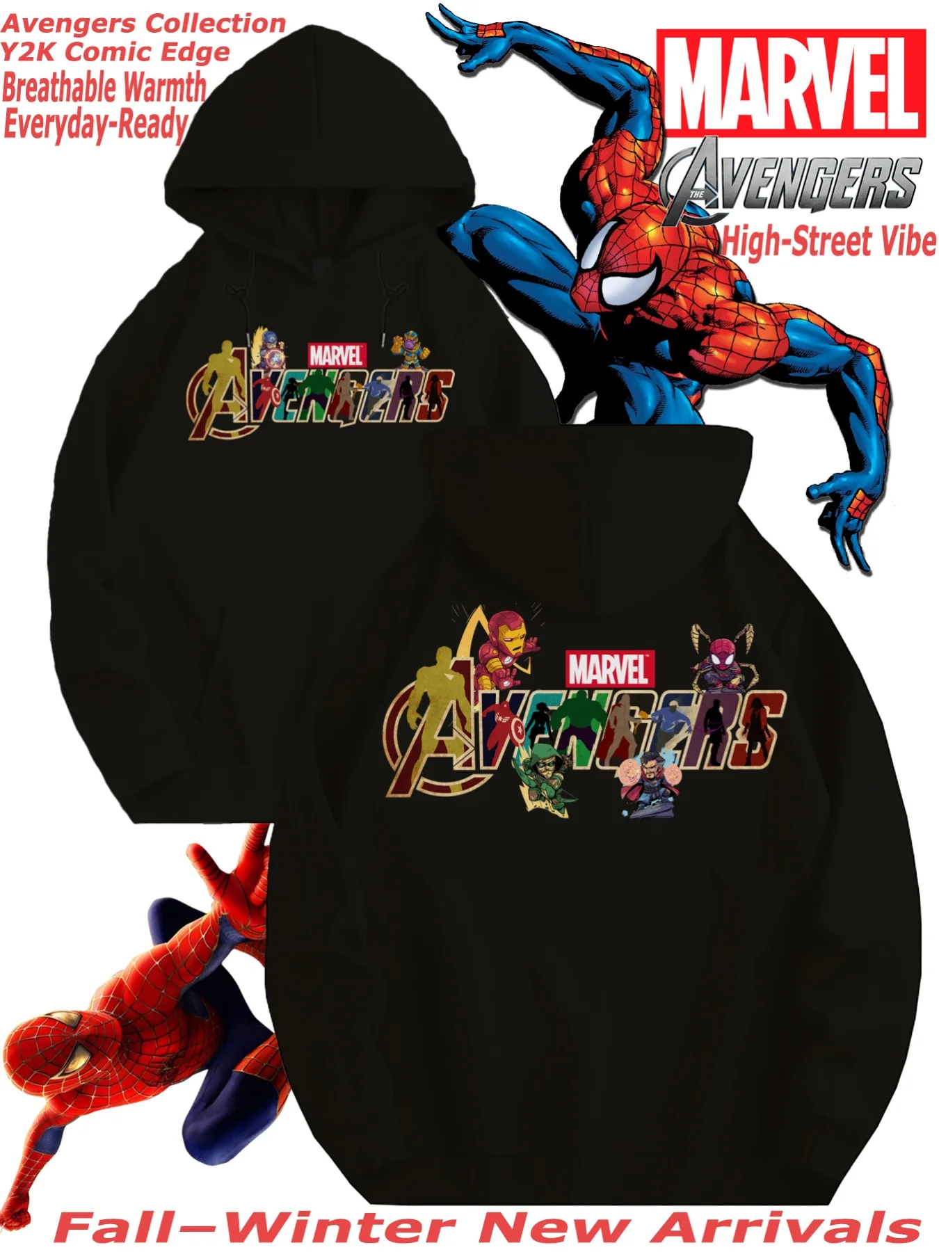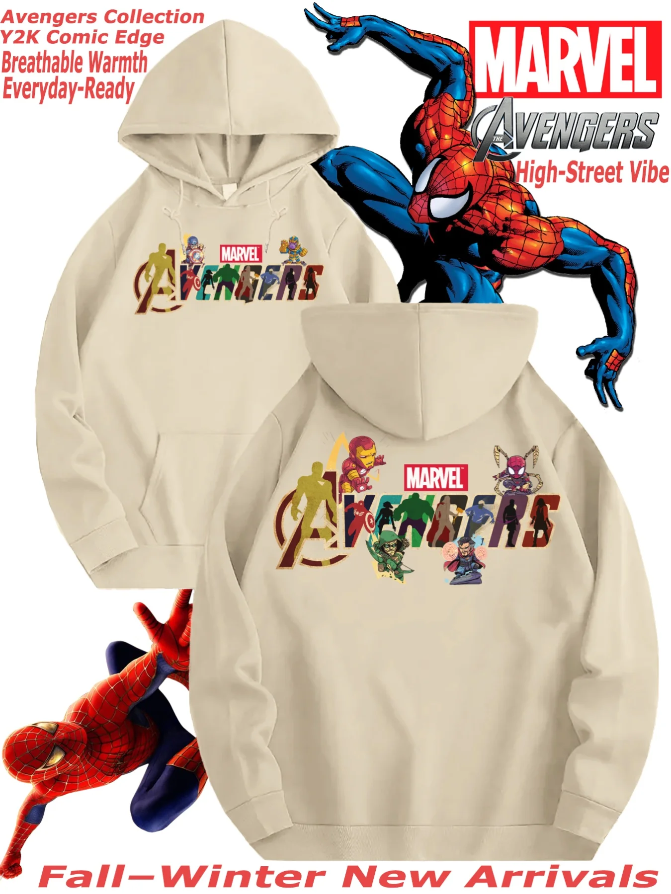 Marvel" Men's Heavyweight Statement Graphic American High Street Style Hooded Sweatshirt, Loose Oversize Fashion Print Soft