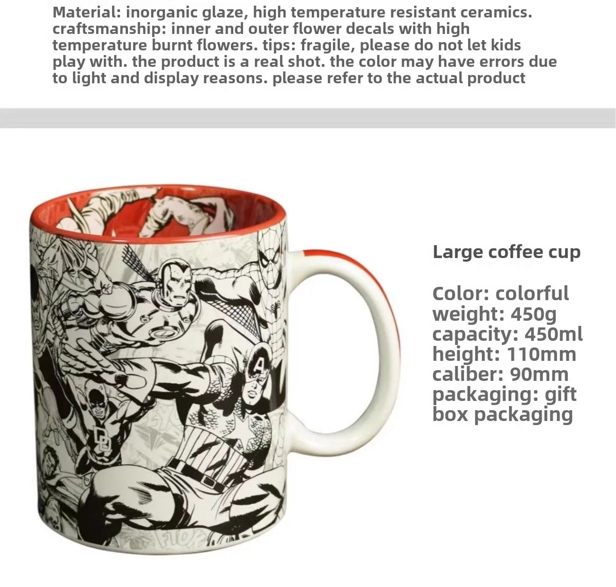 Marvel The Avengers water cup large capacity coffee mug gift box creative Spider-Man Iron Man Peripheral Movies holiday gift