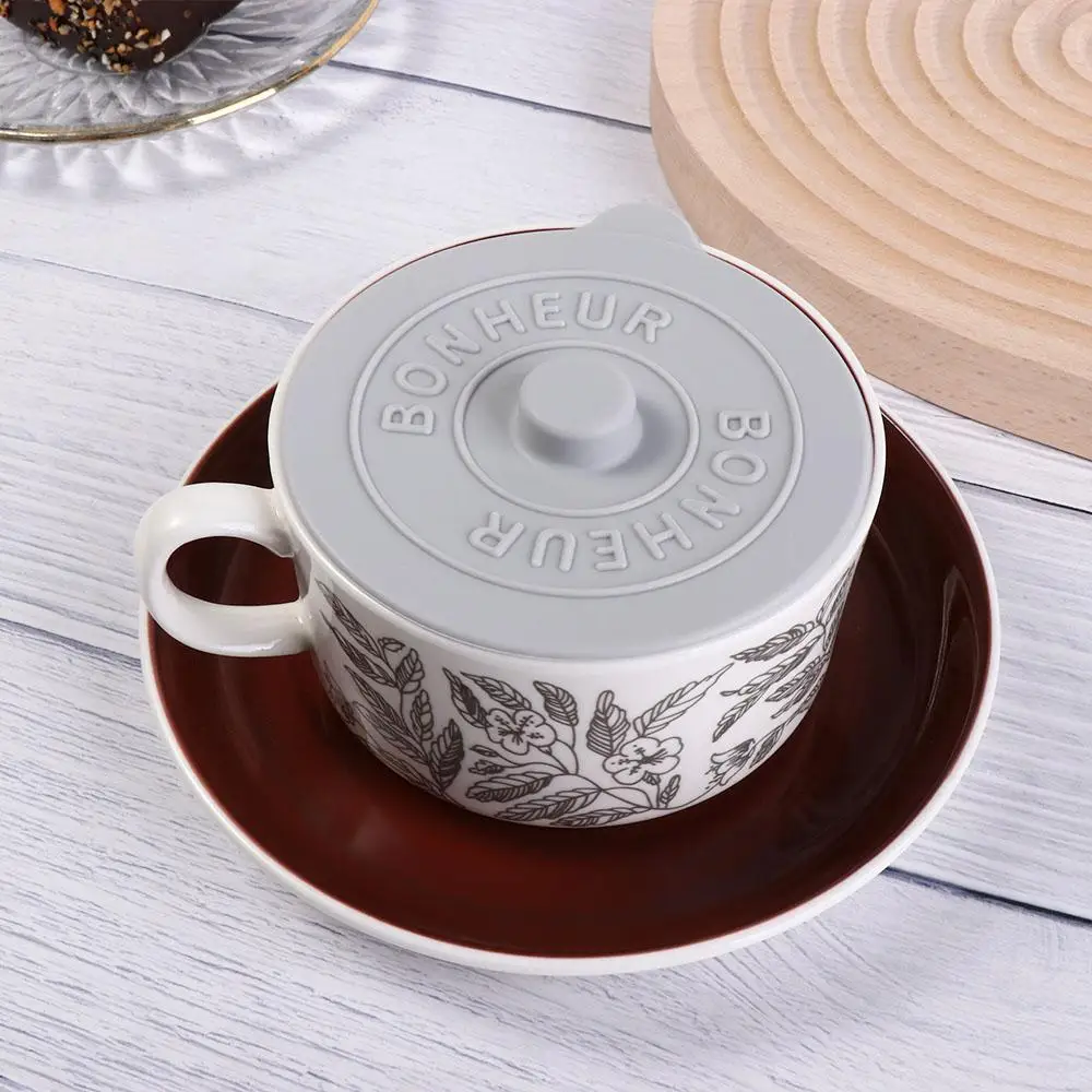 Mugs Lid With Convex Handle Silicone Glass Cup Cover Dustproof Heat-Resistant Cup Lid Universal Round Mug Sealed Cap Pantry