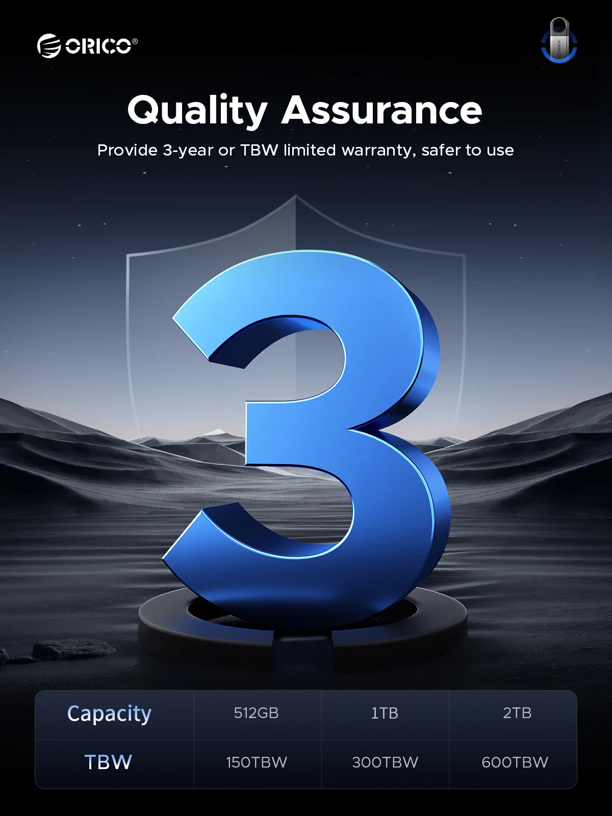 Provide 3-year or TBW limited warranty, safer to use.If there are any issues, we will replace it with a new one for you.