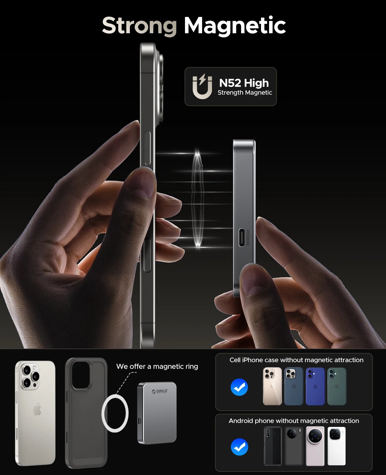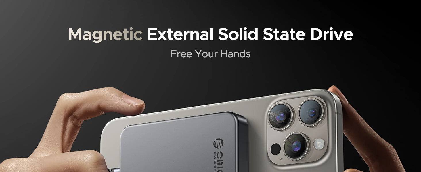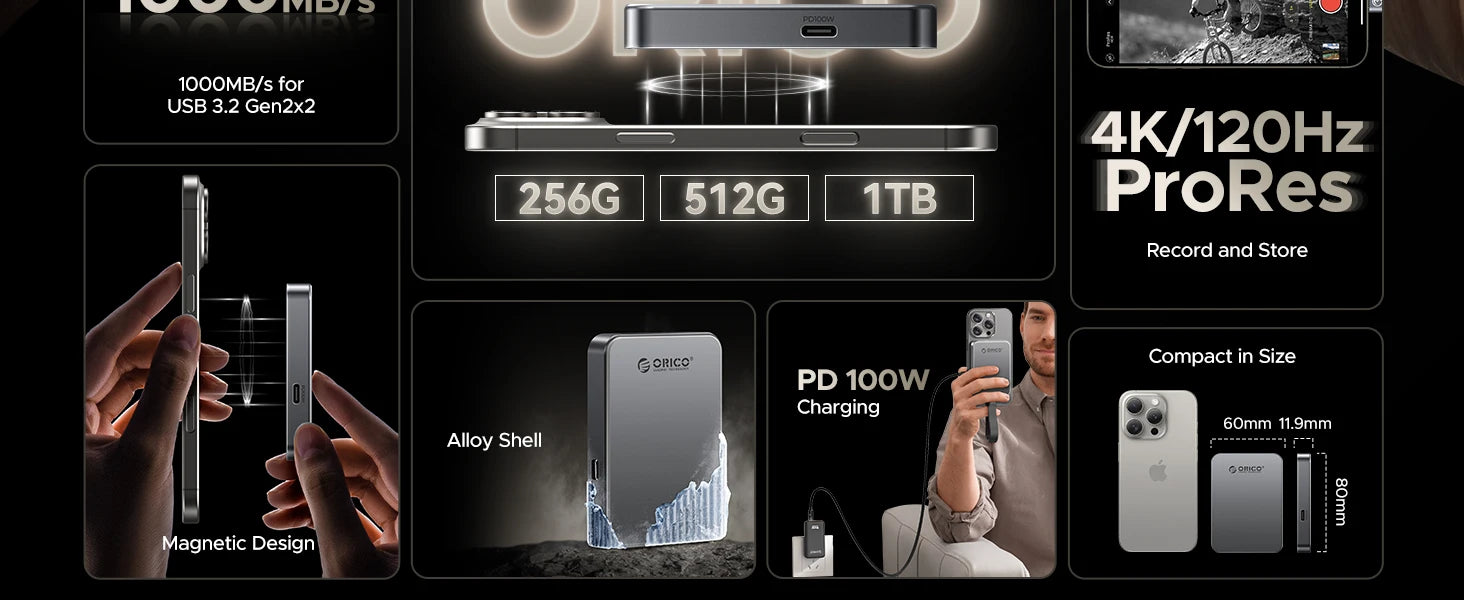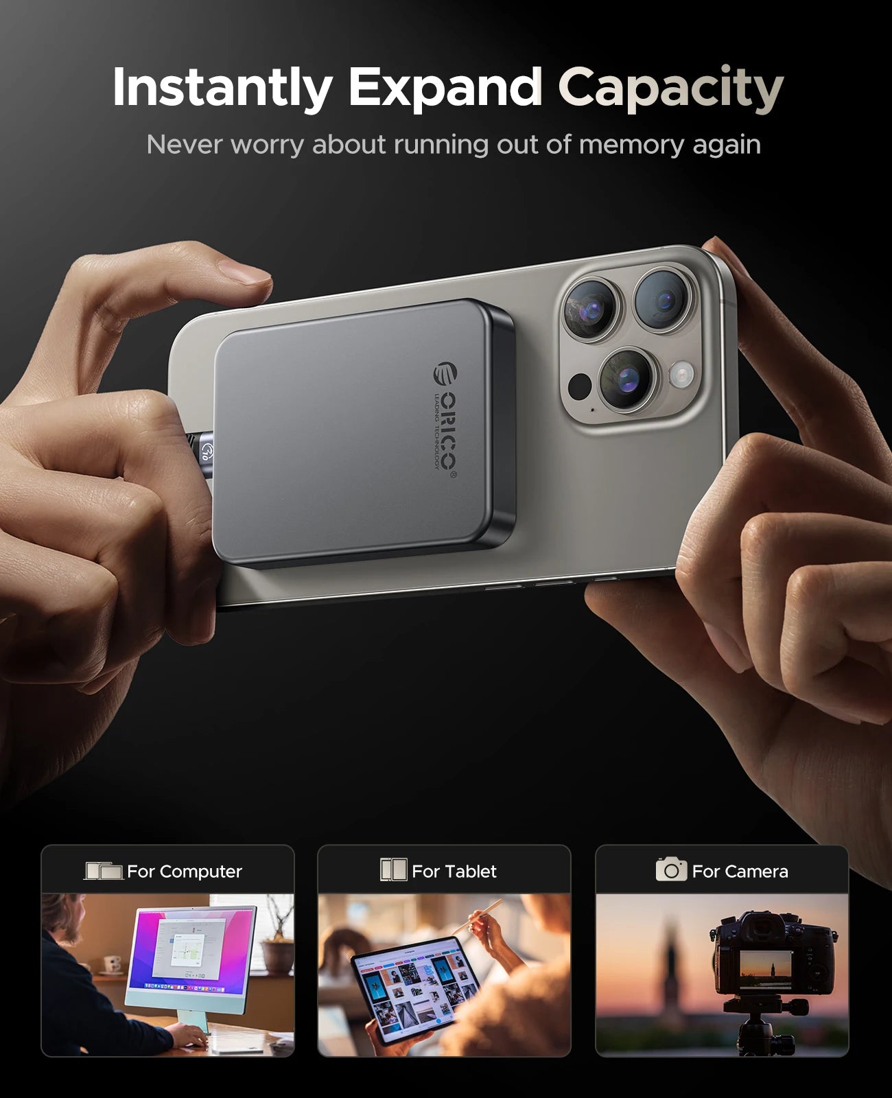 ORICO 1TB Magnetic SSD, PD100W Charging, 4K ProRes HDR, 1000MB/s USB 3.2, Portable External Drive for iPhone 16/15, Laptops