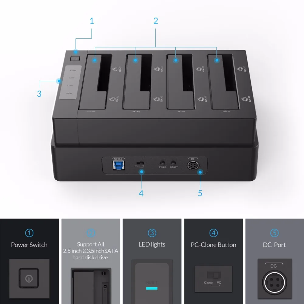 ORICO 2/4 Bay Hard Drive Docking Station with Offline Clone SATA to USB 3.0 HDD Docking Station for 2.5/3.5 inch HDD/SSD