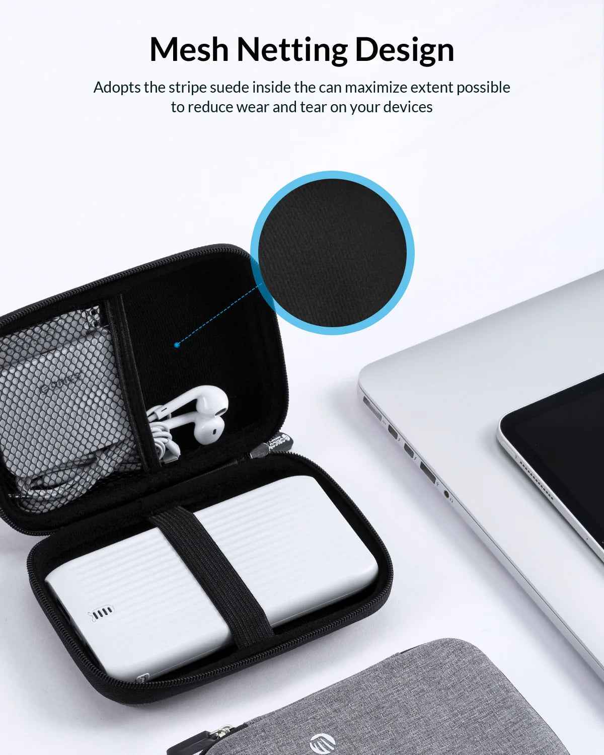PHD-25 hard drive protective bag is made of EVA material and built in cotton, which prevents scratching and bumping to protect your 2.5 inch hard drives. The photo shows HDD/SSD, USB Cable not including