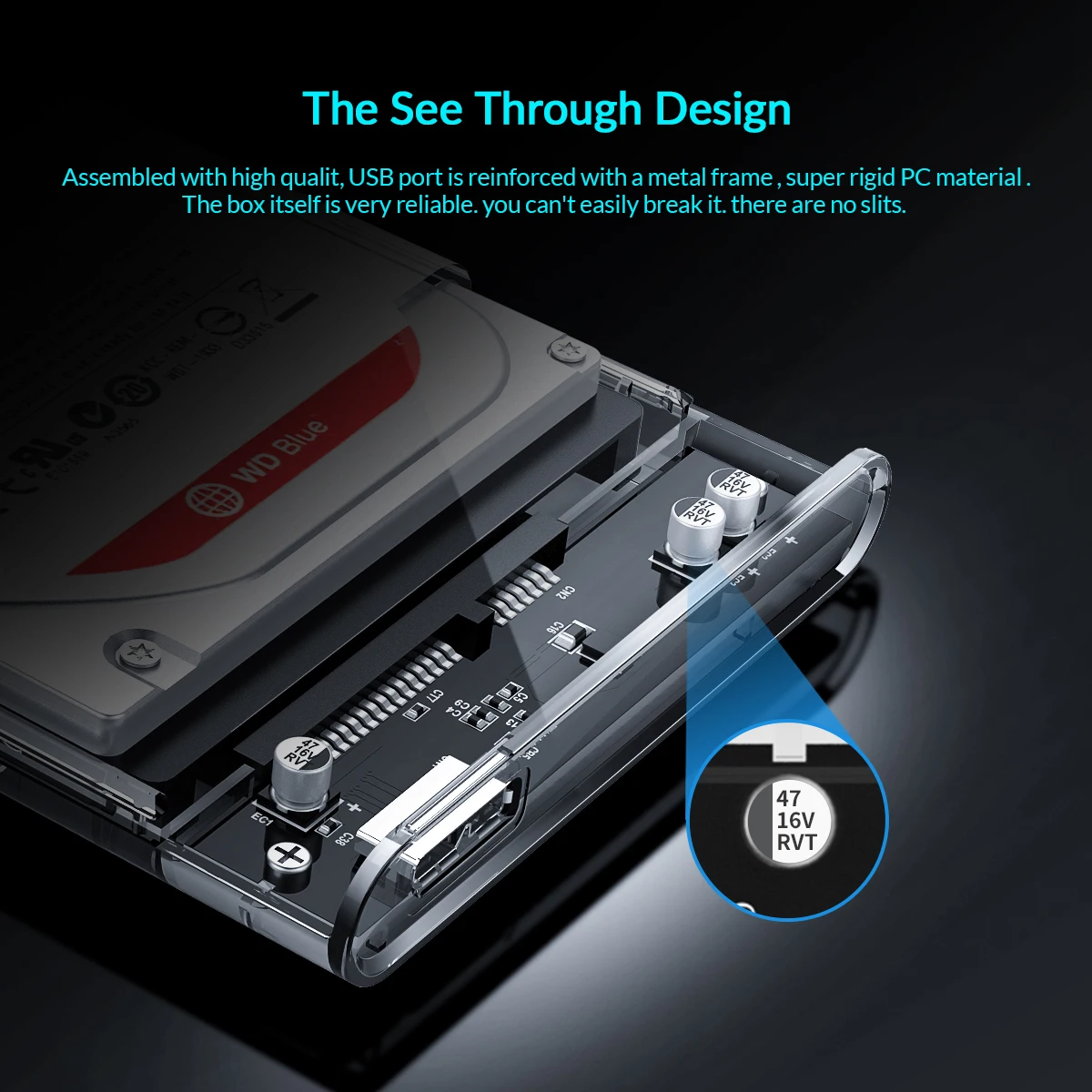 *It's a high-quality clear SSD / HDD enclosure designed and manufactured by ORICO. You can see the internal structure and hard drive status at a glance.