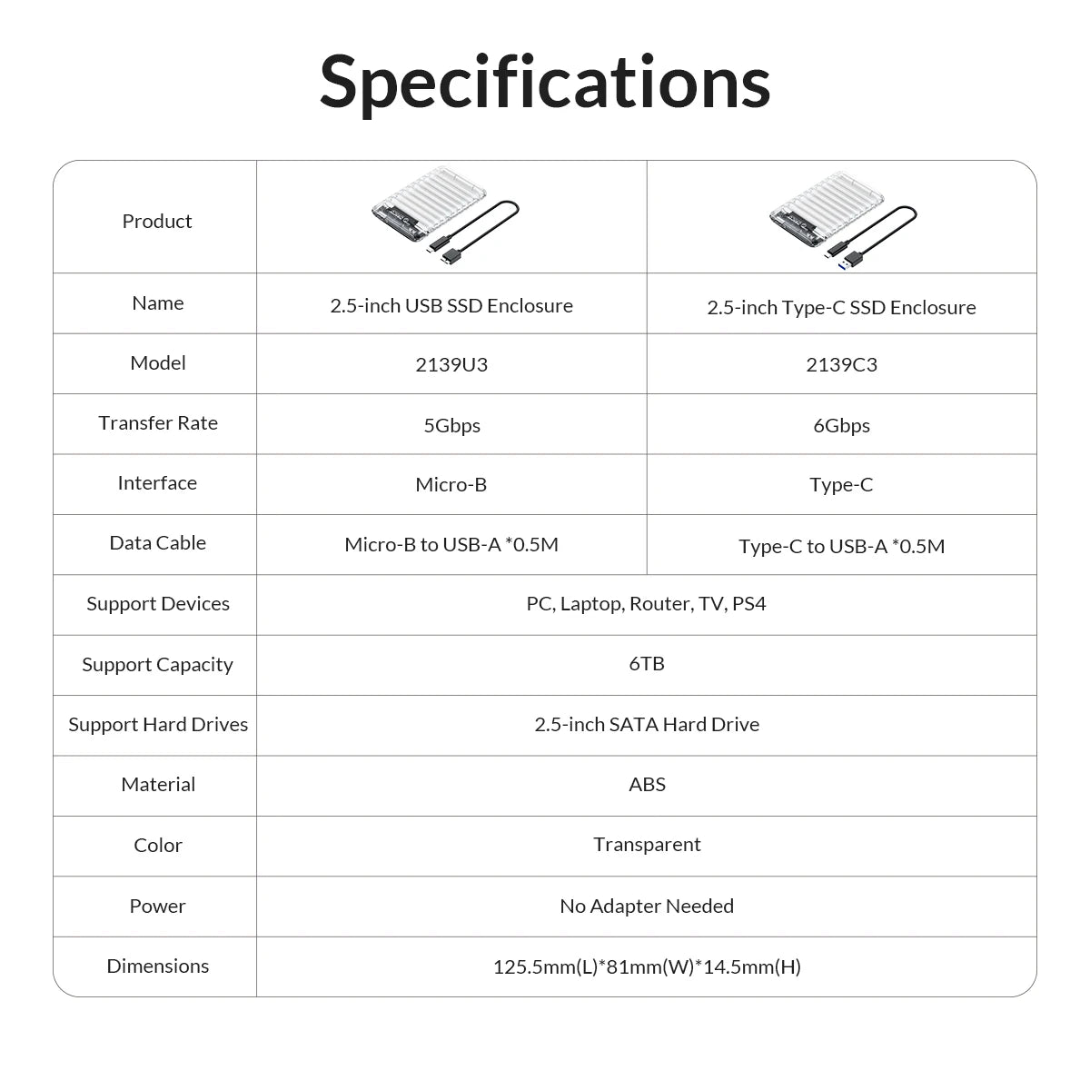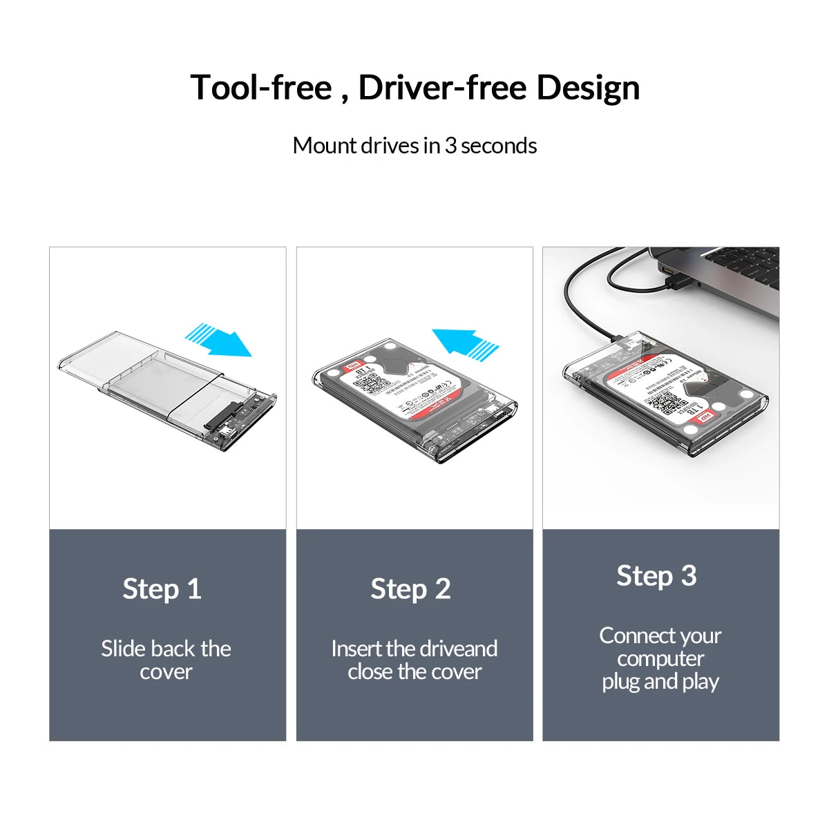 ORICO 2.5'' Transparent HDD Case SATA to USB 3.1 Gen2 10Gbps External Hard Drive Case HDD Enclosure SSD Disk Case Support UASP