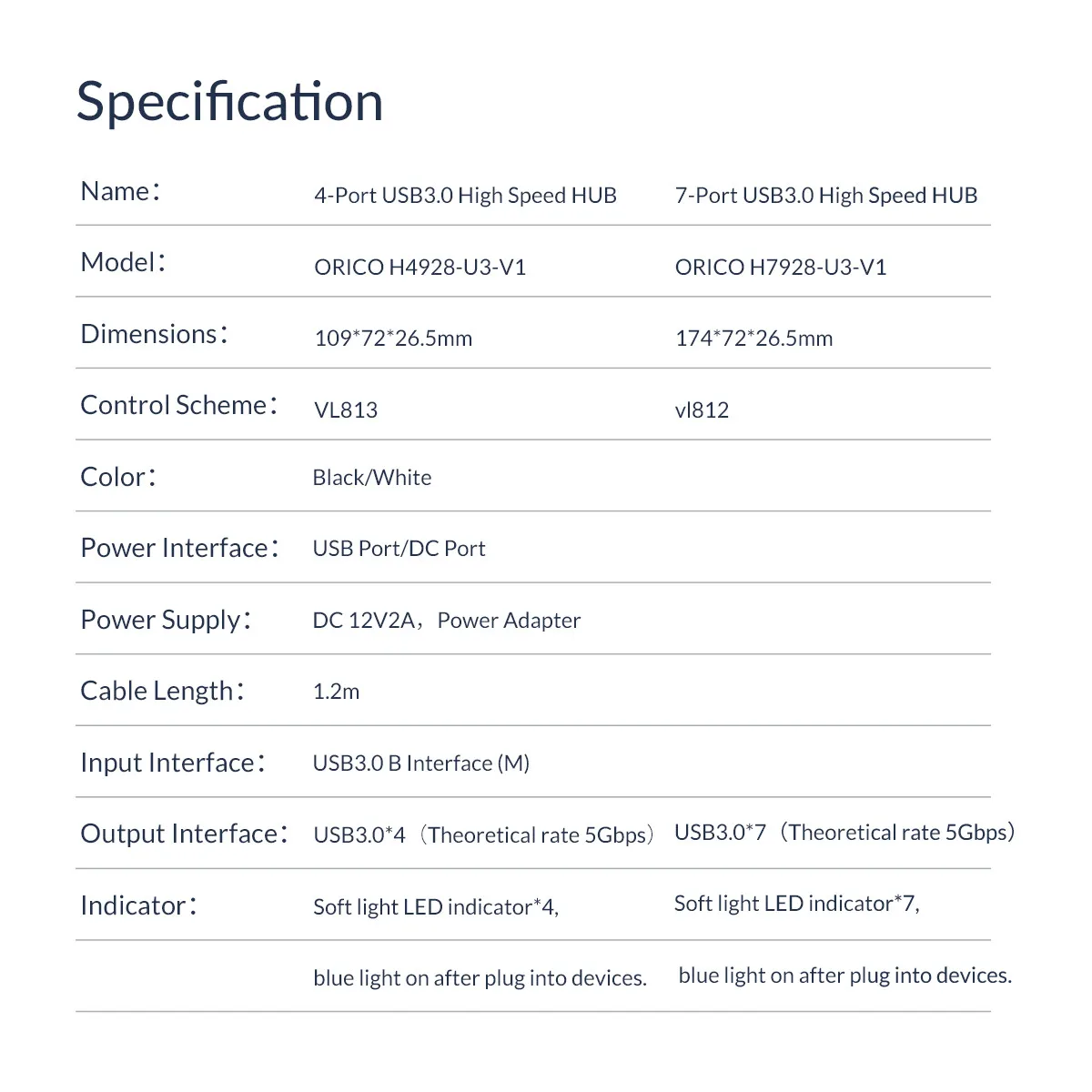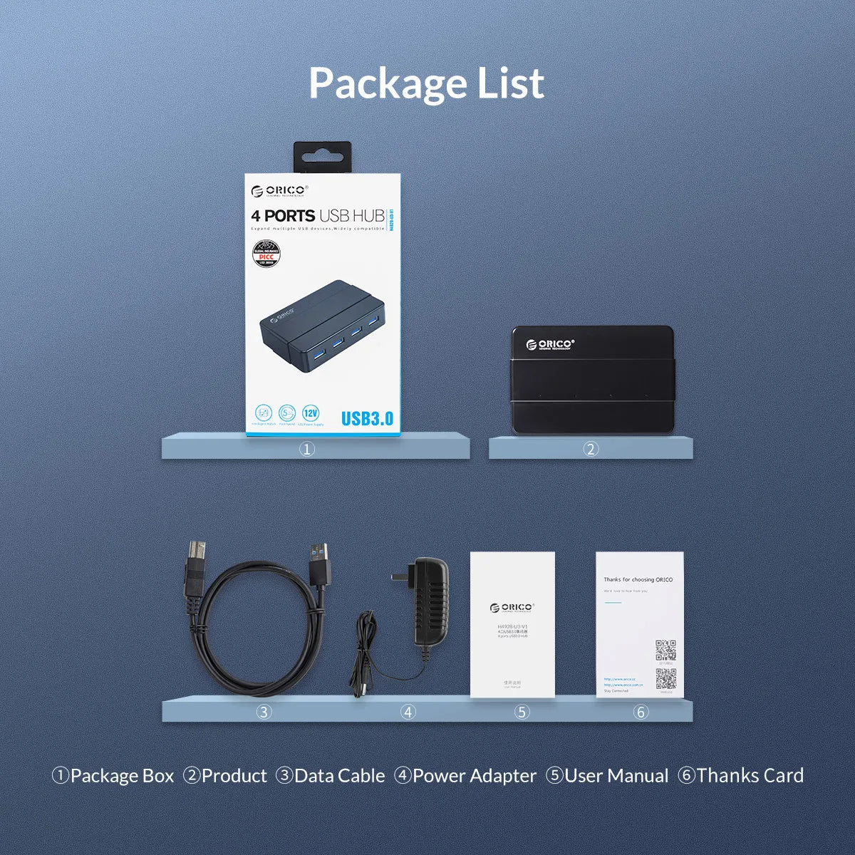 ORICO 4 7 Ports USB 3.0 High Speed Hub with 12V Power Adapter USB Splitter OTG Adapter for Desktop Laptop Computer Accessories