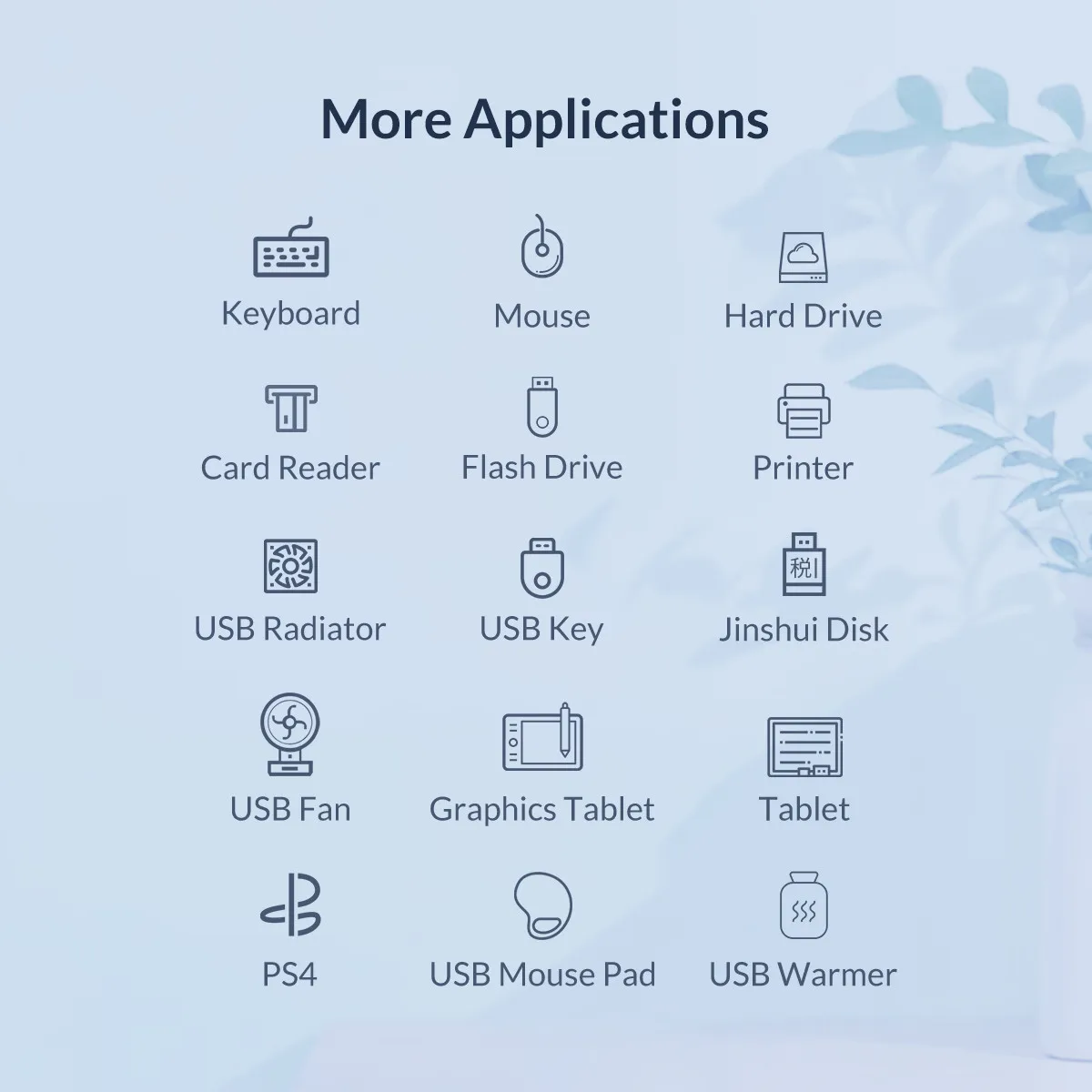 【Multiple Protection】The adapter has leakage protection, short circuit protection, over-voltage protection and over-current protection to protect the effective connection of your devices. Each interface is equipped with a separate LED status indicator, the blue light always lights up while working, so you can clearly see the status of data transmission.