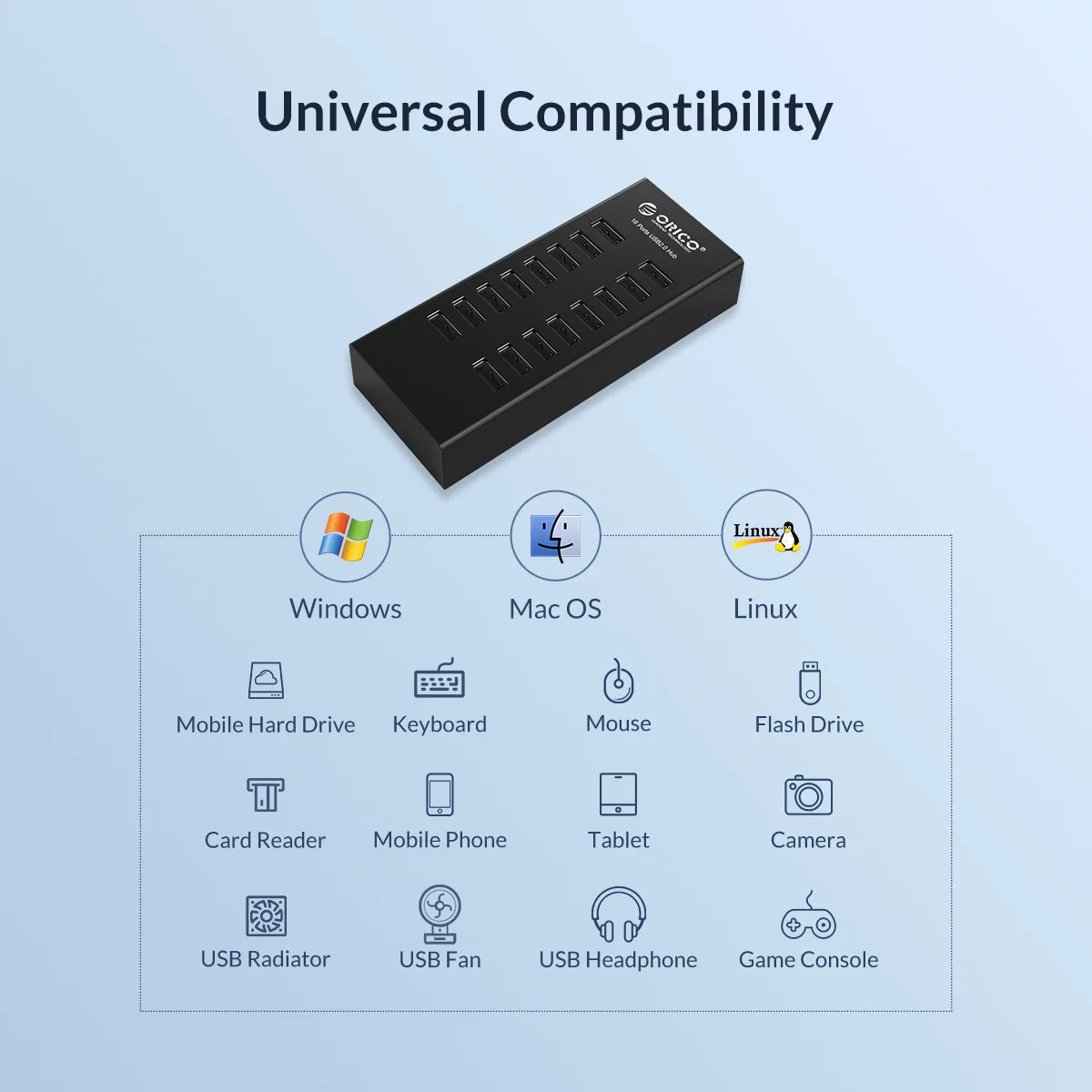 ORICO Industrial USB Hub 16 Port Aluminum USB Splitter Power Adapter Dock Station for Computer Accessories Orico Official Store
