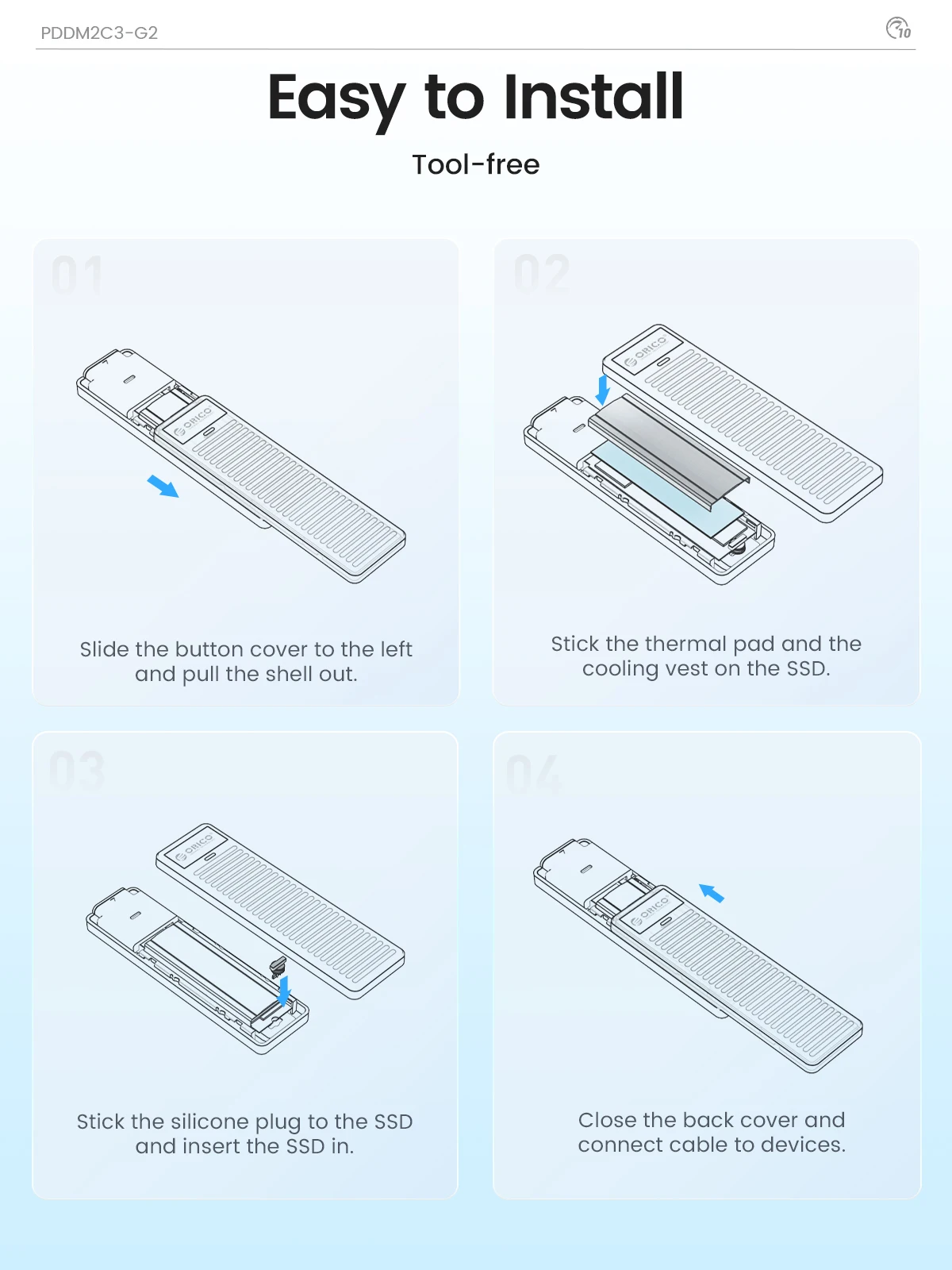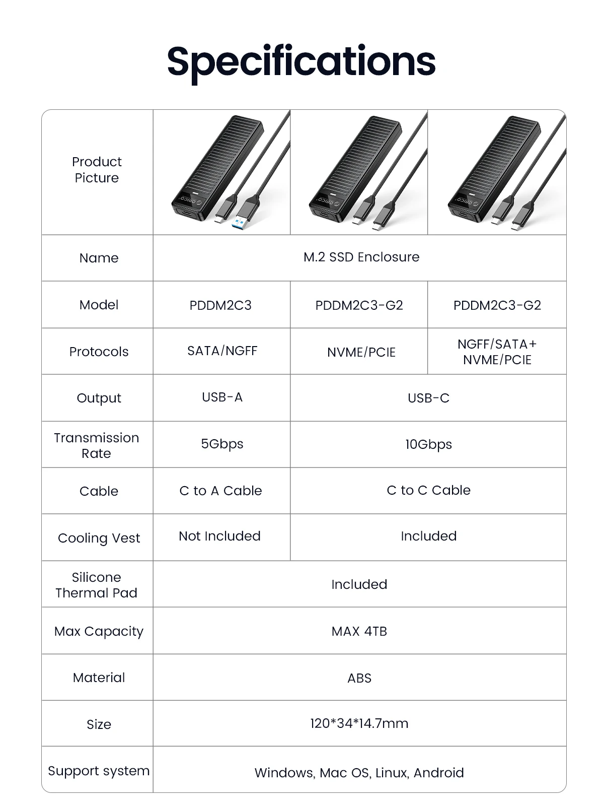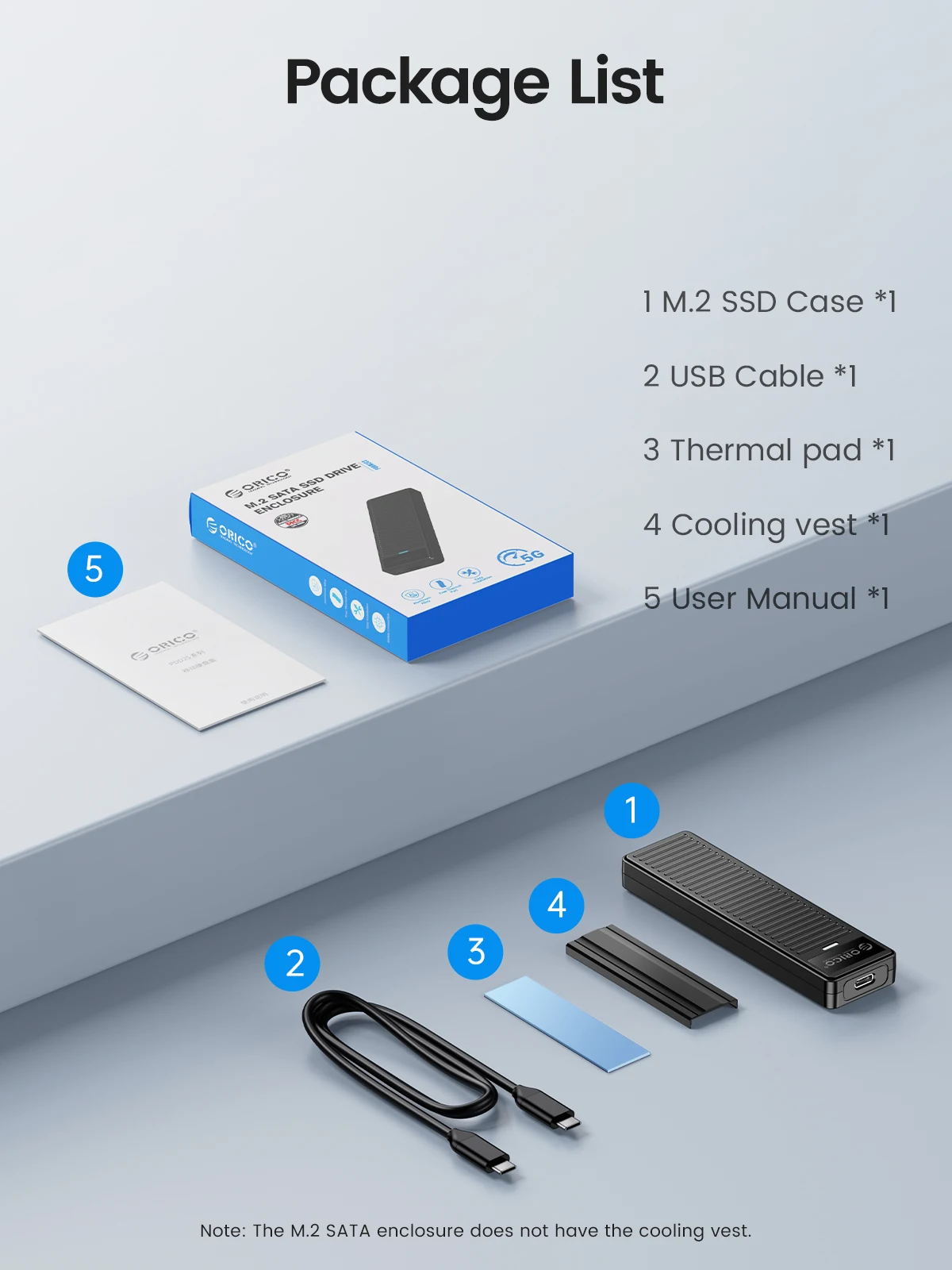 Package coming with Cooling Vest, keep the enclosure cool even after a long-time operation(SATA model not included)