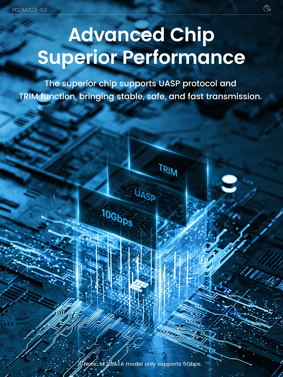 Supporting USB 3.2 Gen 2 protocols with 10Gbps trnasmission speed, reaching up to 1000MB/s maximumly