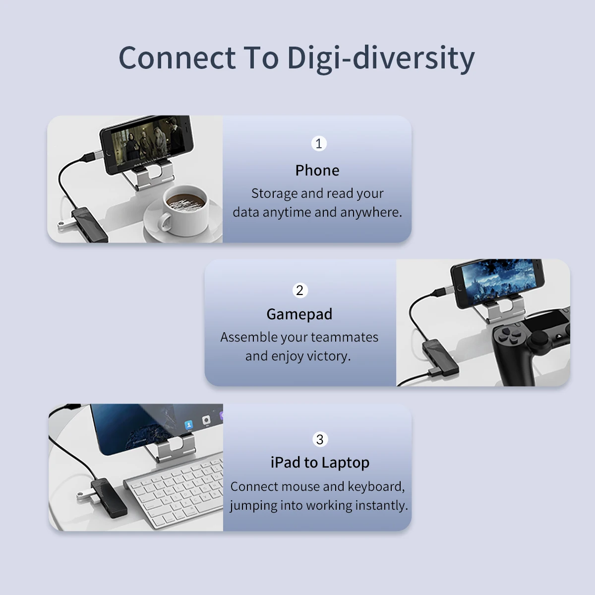 - Can connect with devices like a flash drive, keyboard, and mobile hard drive, solve the issue of lack of ports