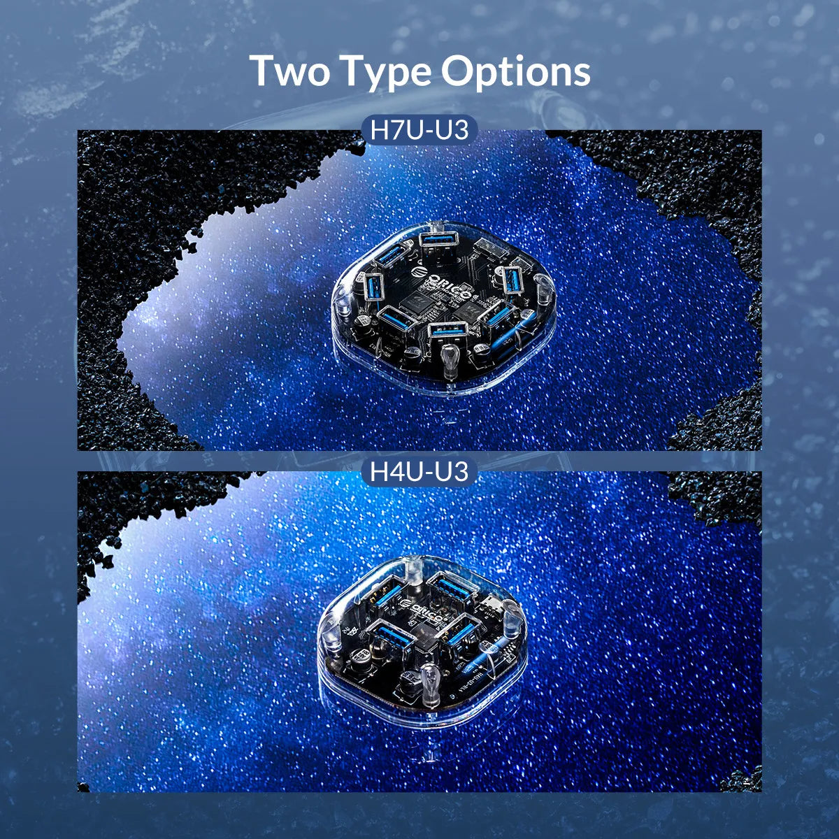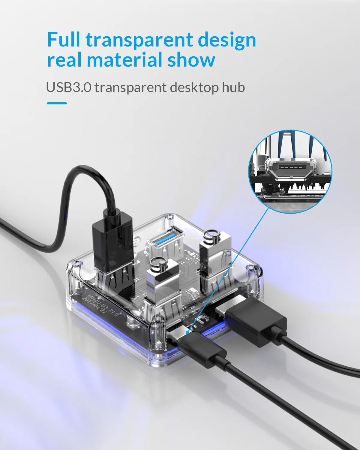 ORICO Transparent Series USB HUB Multi 4 7 Port High Speed USB3.0 Splitter With Micro USB Power Port For Laptop PC OTG Adapter