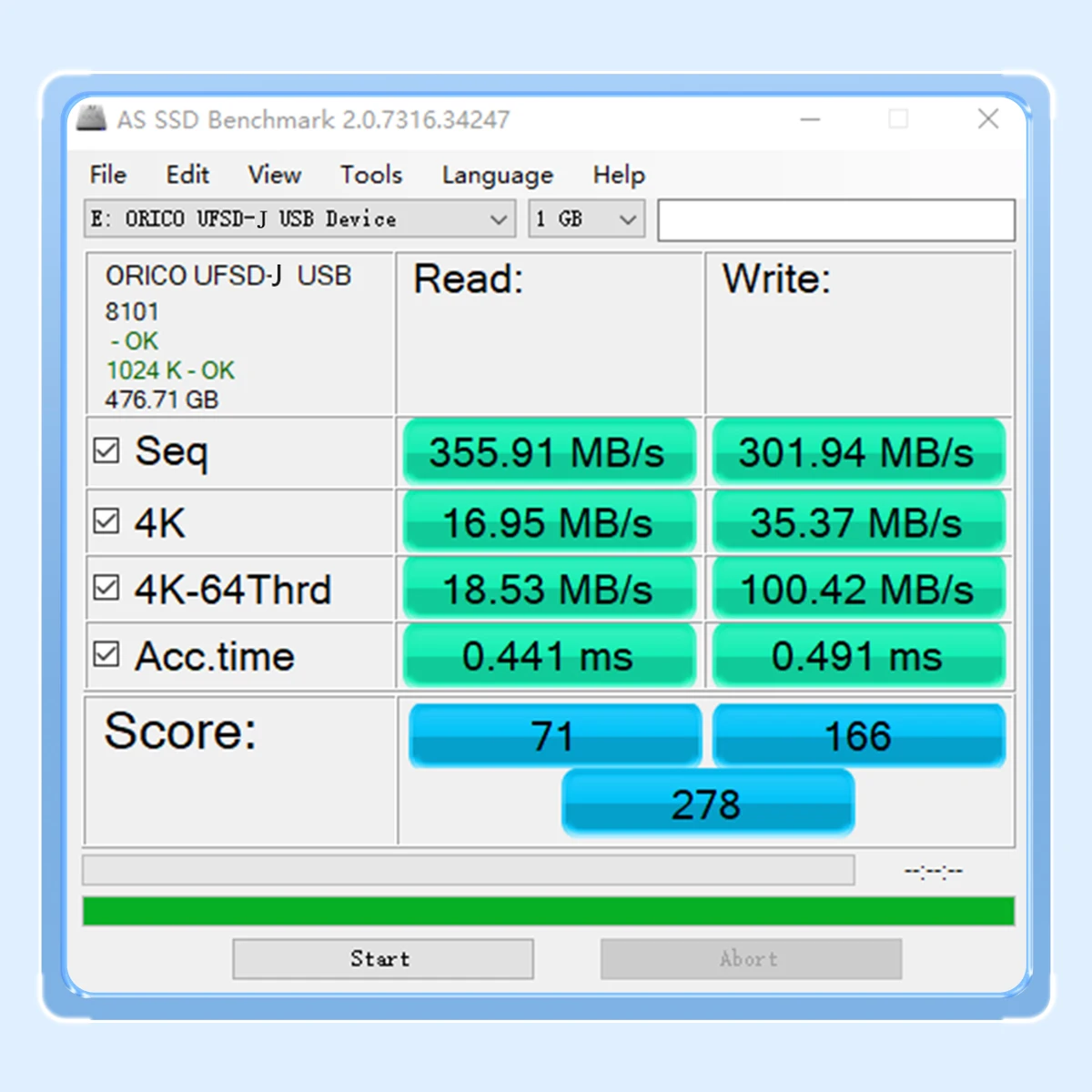 UFSD USB3.2 Gen1 Flash Drive Read 60GB file in the test environment of ORICO Laboratory, Transmission speed is stable.