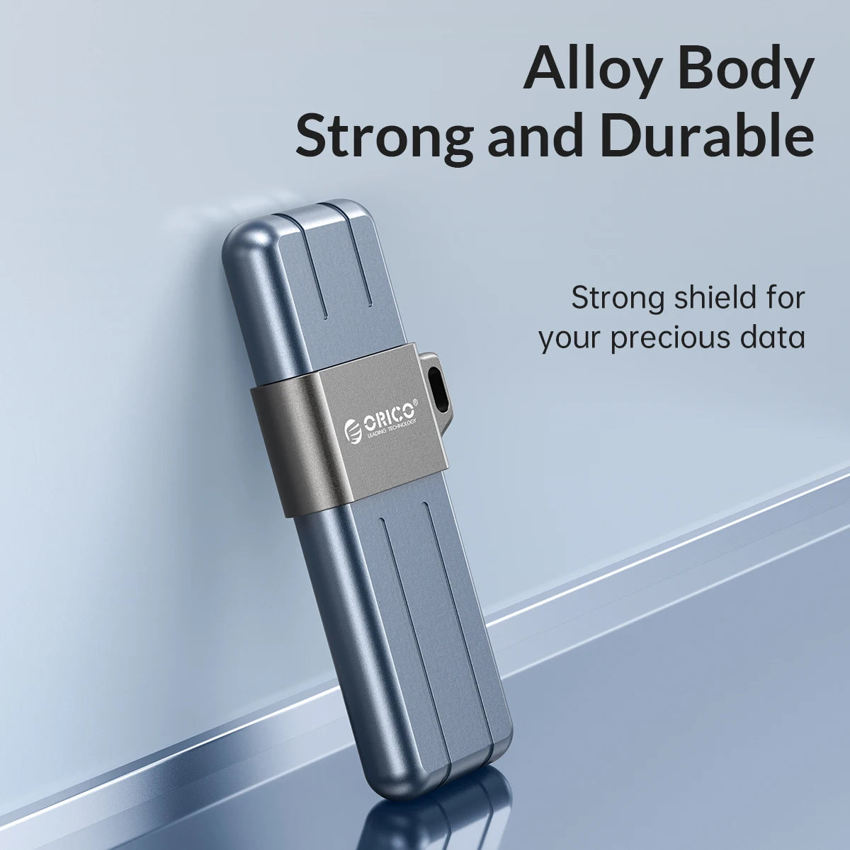 ORICO UFSD USB3.2 Gen1 Flash Drive features a stylish yet tough metal casing that protects the drive from unexpected knocks.