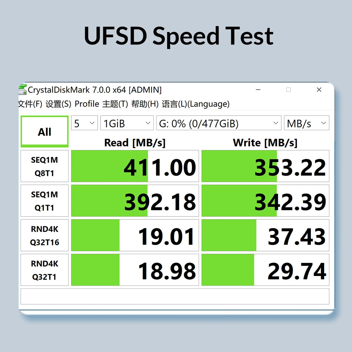 Using the USB3.2 Gen1 high speed transmission protocol, High-speed USB3.2 Gen1 Performance of Read Speed Max 411MB/s, Write speed up to 350MB/s.With write speeds of up to 15X faster than standard USB 2.0 drives , you can transfer 1 GB File in less than 3 seconds .